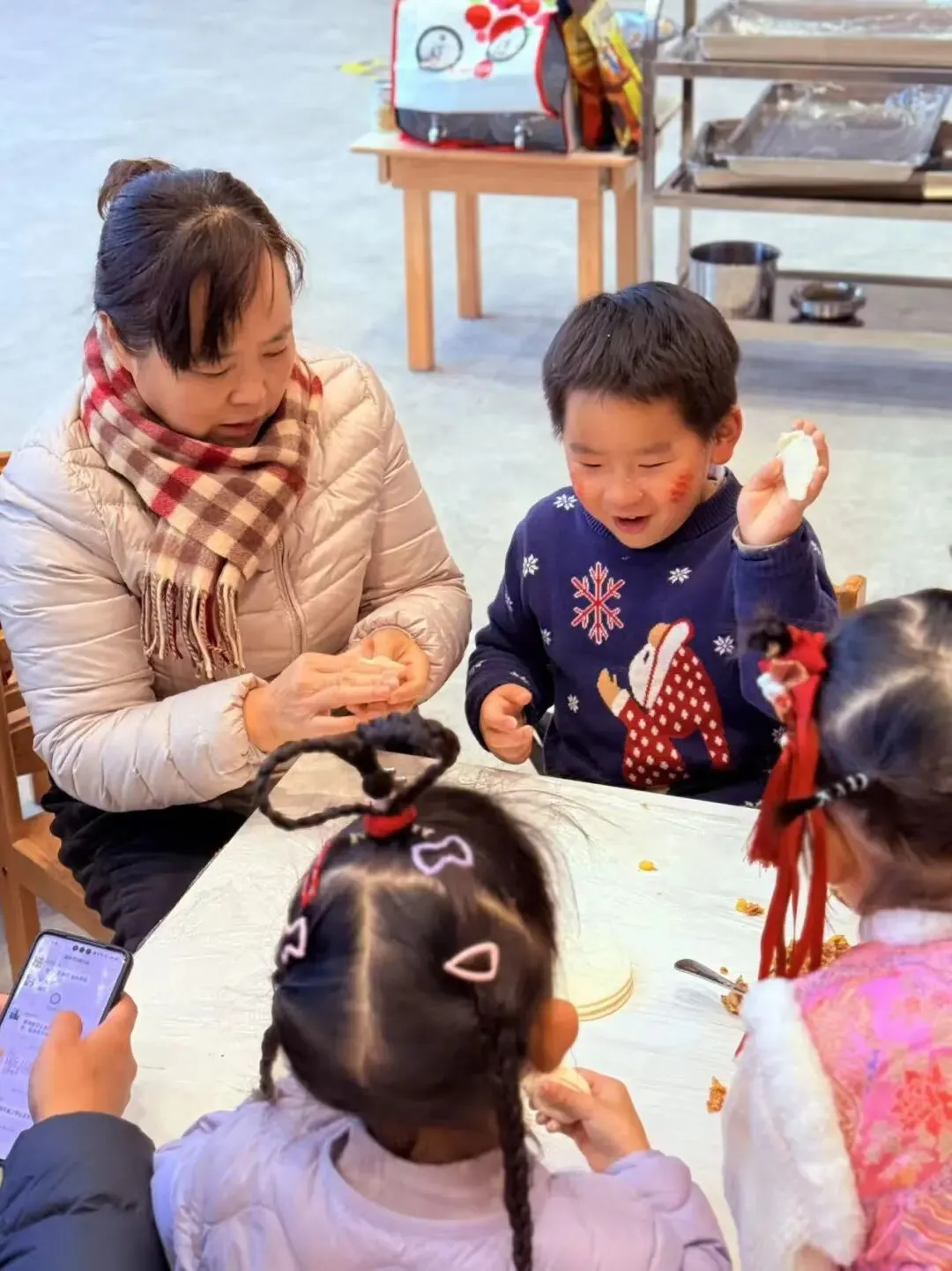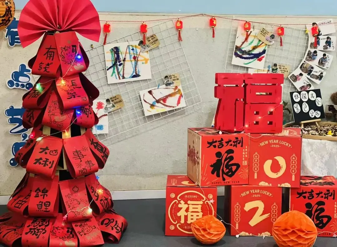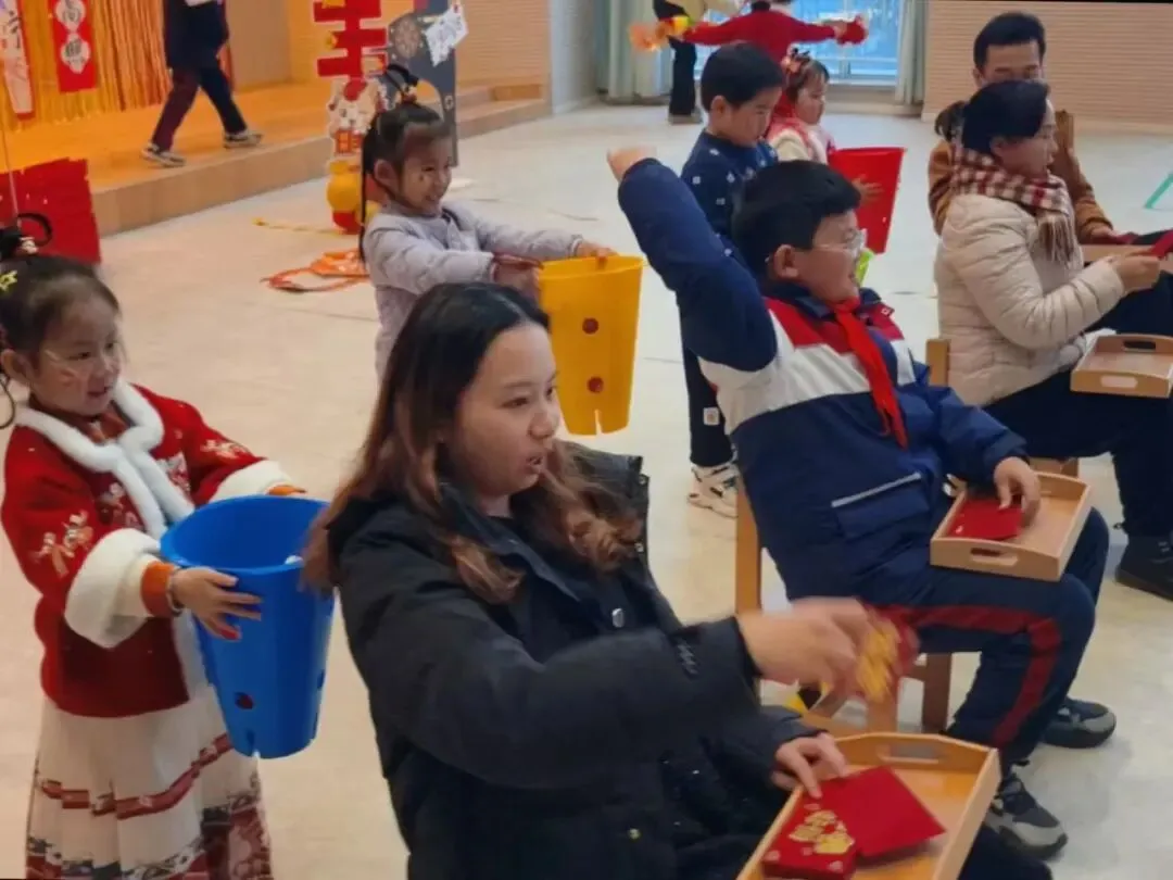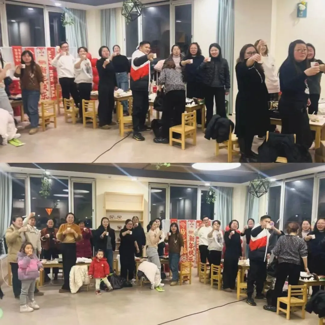 中一班的散学式以家之名,共赴新年之约!王老师早已备好暖心馅料,宝贝们洗净小手齐动手,揉面团、放馅料、捏花边,指尖翻飞间,一个个形态各异的饺子诞生,满是新年的烟火气。趣味闯关抢红包环节欢乐升级:拉力绳贴贴画赢贴纸、发财桶接红包收获好运、Teacher Taylor的趣味闯关赢取福袋,还有拼字背古诗的脑力比拼,每一项挑战都让孩子们乐在其中。品尝着自己亲手包的暖心饺子,用一学期积攒的贴纸兑换惊喜礼物,再与小伙伴们定格全家福,中一班的宝贝们在满满的仪式感中欢喜迎新年。