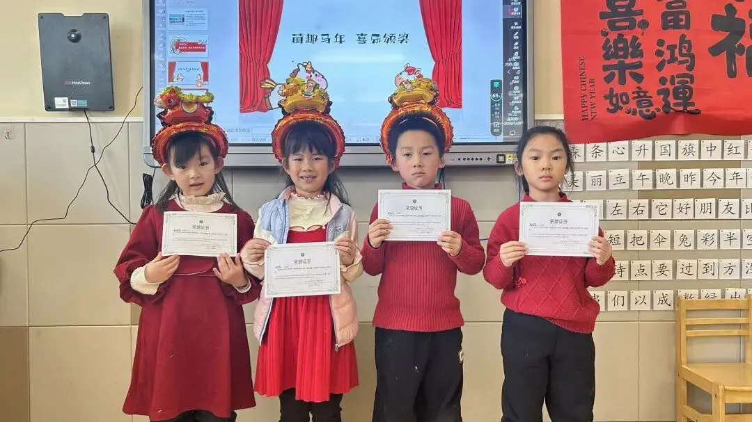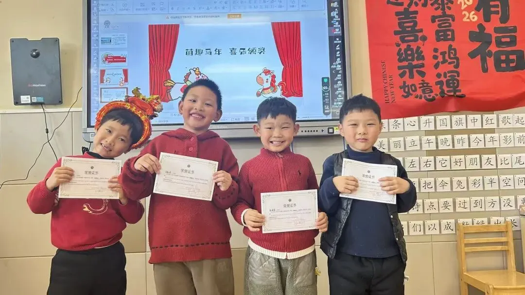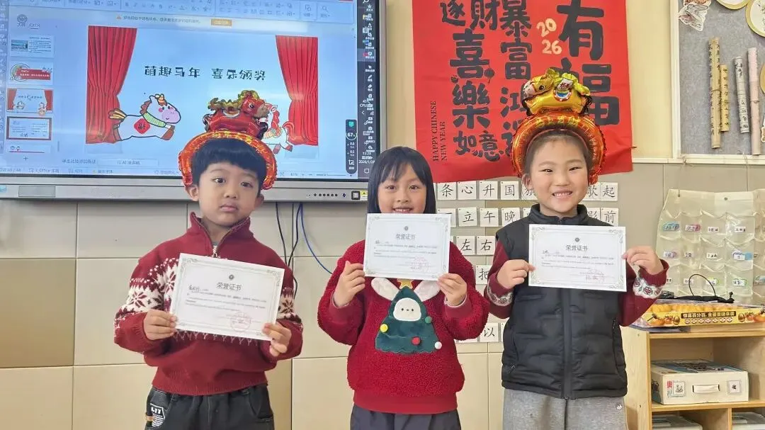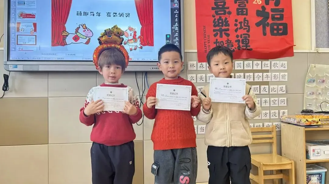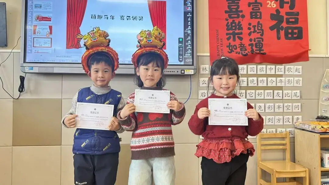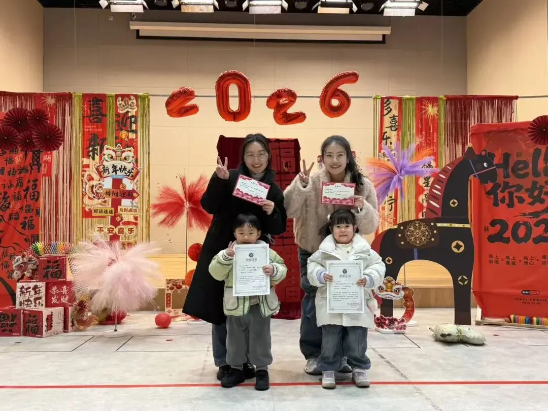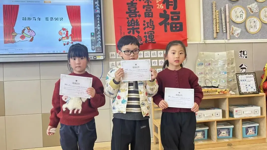 大一班的“快乐小马”们以一场充满趣味的散学式,为学期生活收尾!成语猜谜环节妙趣横生,孩子们开动小脑筋,在“一马当先”“马到成功”等寓意美好的谜题中,感受传统文化的魅力,现场答题声、欢呼声此起彼伏。新年茶话会上,宝贝们围坐一堂,分享甜蜜零食与校园趣事,在欢声笑语中提前感受新春的喜气洋洋。亲子手工时间温情满满,家长与宝贝携手制作“红果果发财桶”,将红火火的好运与满满的祝福亲手装回家。压轴的颁奖礼上,每一张奖状都是对孩子们一学期努力的肯定,为成长盖上骄傲的印章。愿大一班的宝贝们带着这份温暖,自信奔赴新学期!