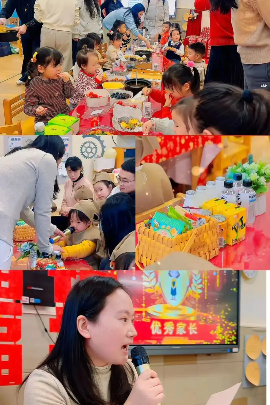 英特大班的散学式堪称一场创意与温情交织的盛会!AI模拟孩子20岁模样的惊喜开场,瞬间点燃现场气氛,家长们看着图片上“长大后的宝贝”,眼中满是惊喜与感动,笑声与感叹声不断。会上,趣味游戏问答环节解锁孩子们的成长密码,Thato老师还巧妙将英语亲子大比拼、听音训练、融入其中,让家长们在轻松互动中重温孩子的学习点滴,感受英语学习的乐趣。暖心的饺子宴搭配惊喜红包,更让现场暖意融融,满是幸福滋味。这场别开生面的相聚,不仅回顾了一学期的成长与收获,更定格了家园同心的美好瞬间。