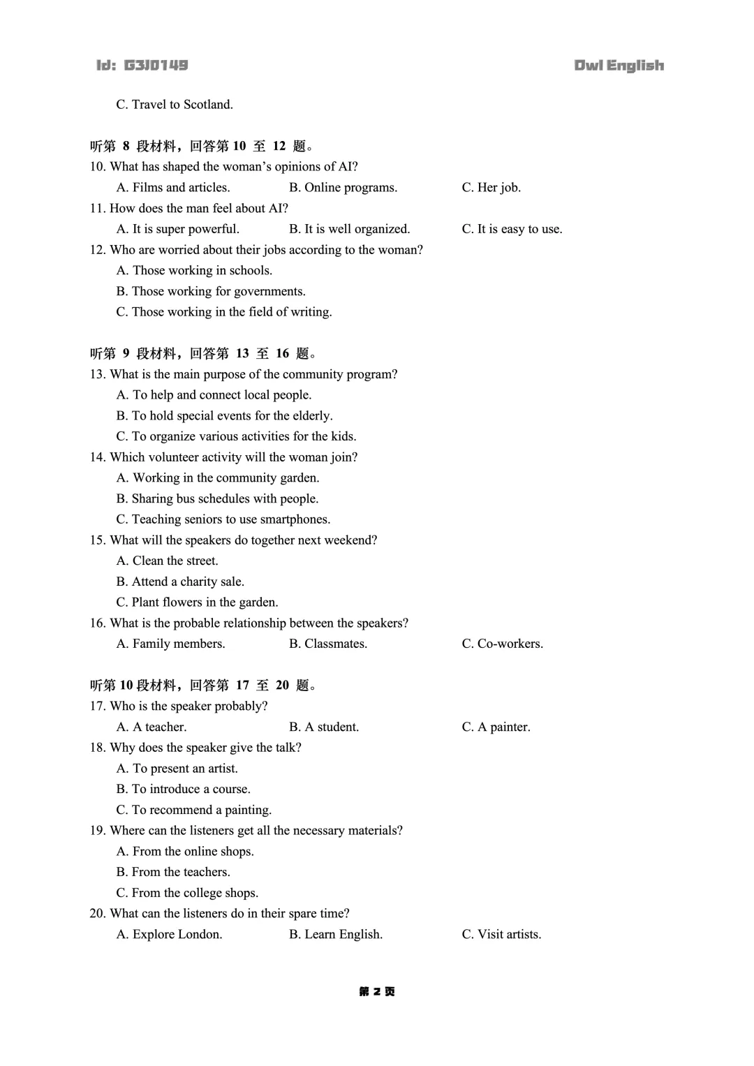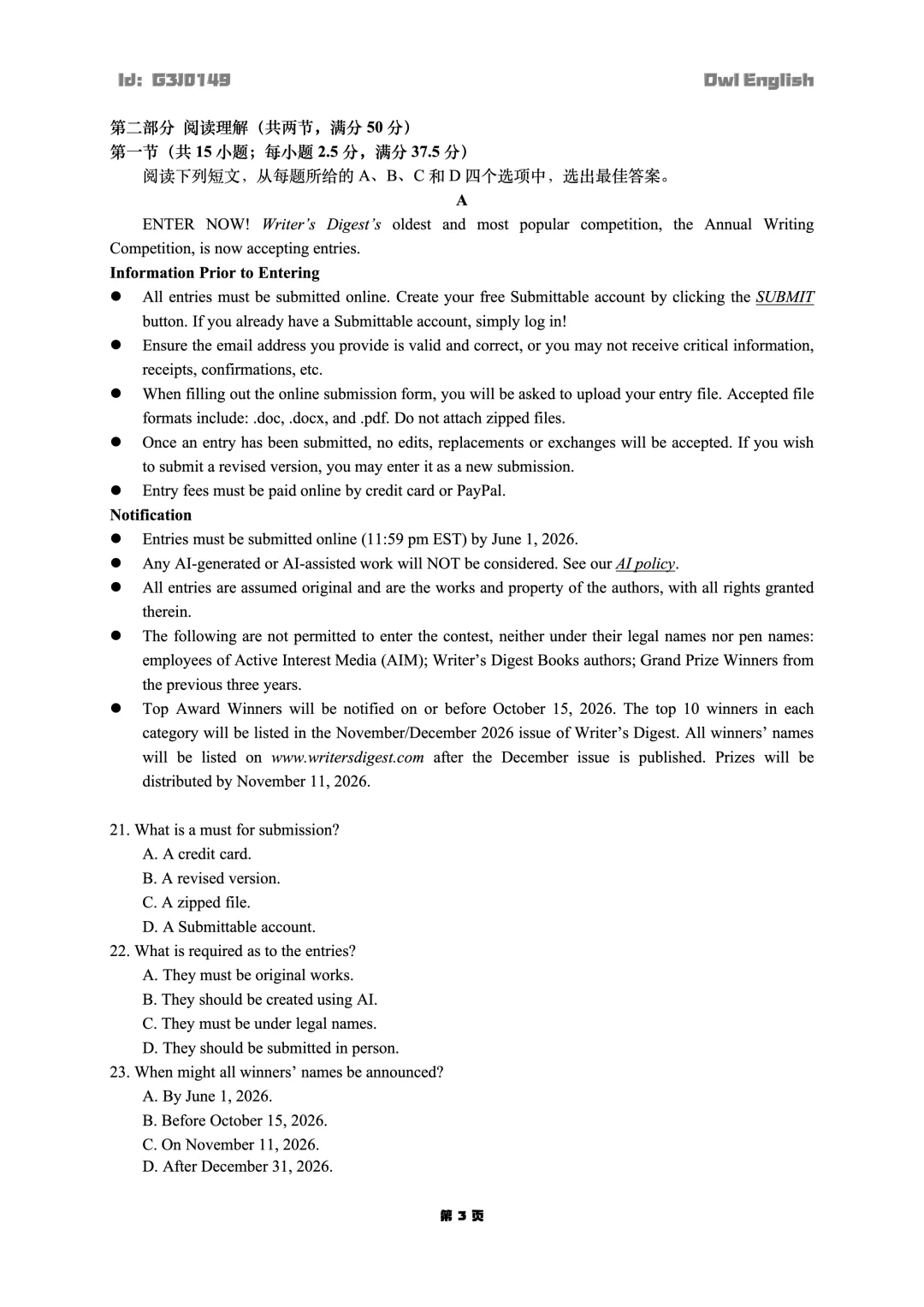 Attention:文末有试卷链接