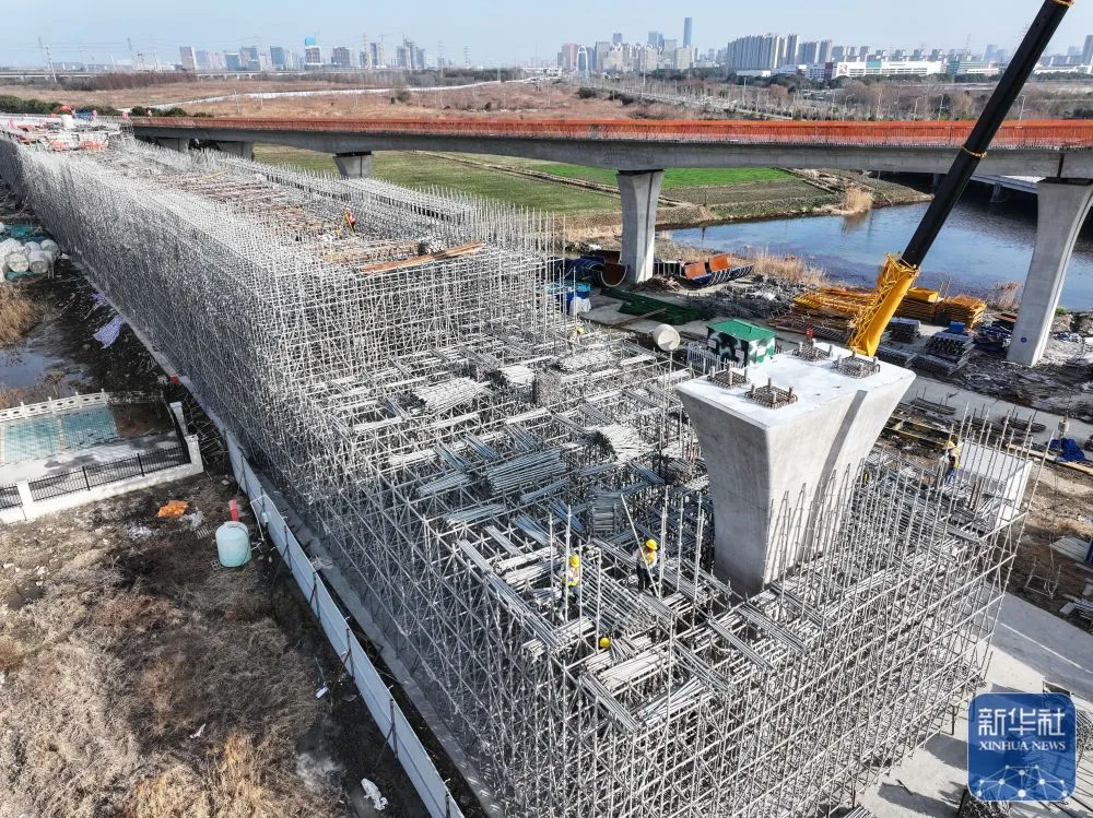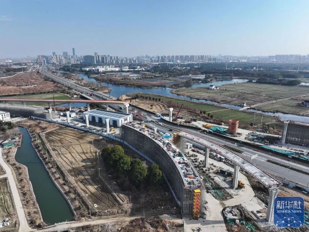 2月3日拍摄的高铁苏州北站快速联络道1标段项目施工现场(无人机照片)。