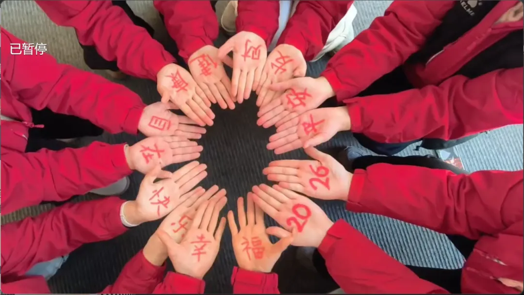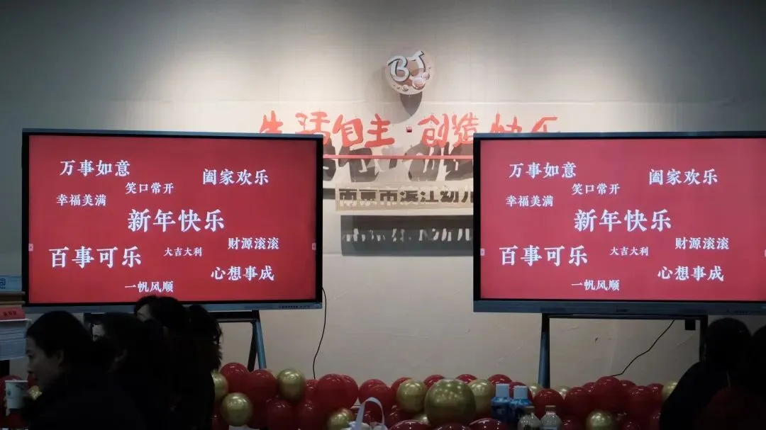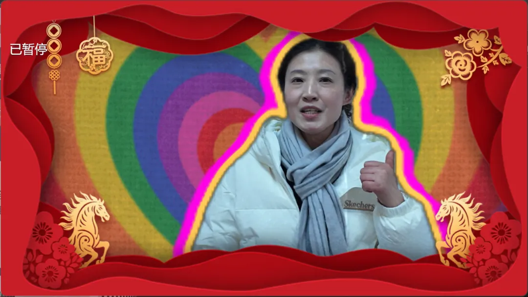 会场里循环播放着大家的新年祝福视频,每一句暖心话语都让冬日的寒意消散无踪。