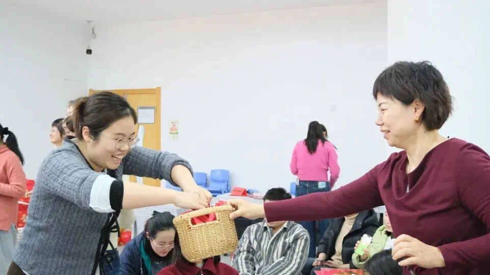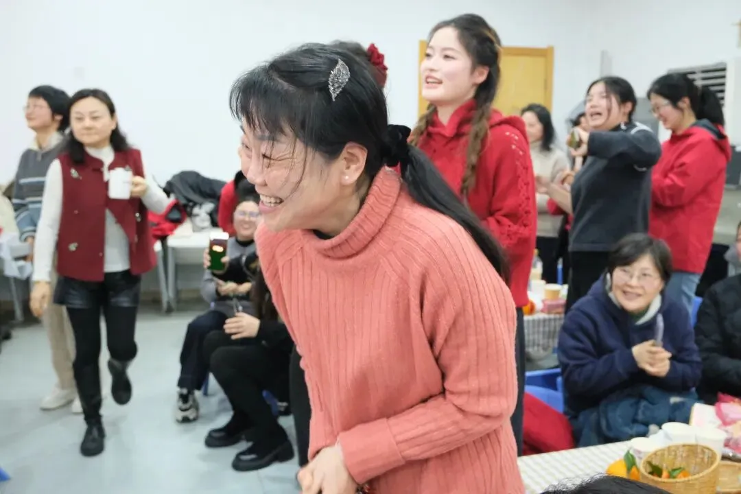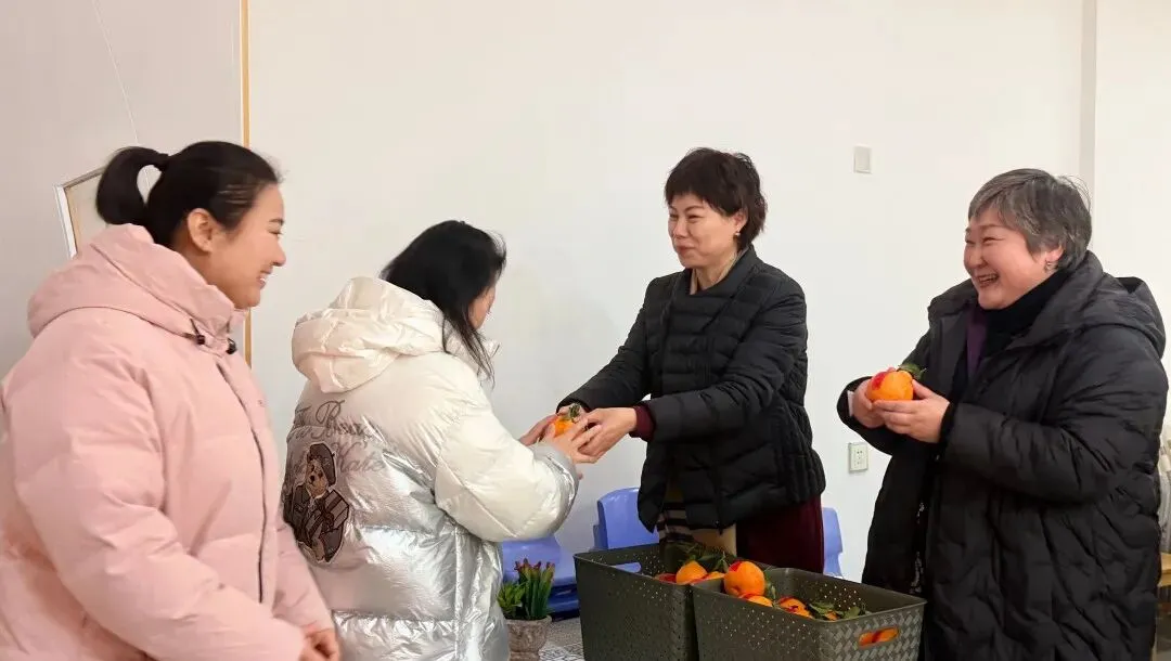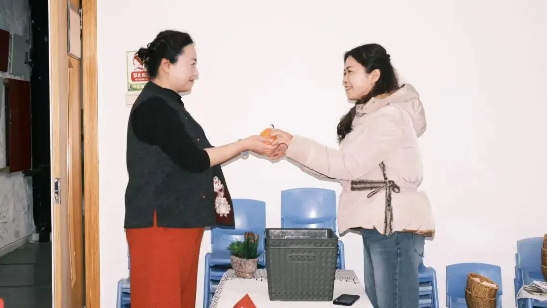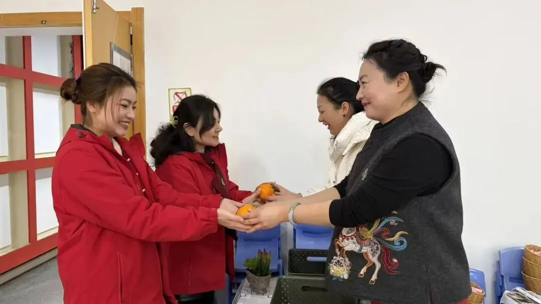 行政管理人员化身“送福使者”,在老师们入场时递上一个个金灿灿的吉祥橘。这小小的橘子,寓意着新的一年大吉大利、硕果累累。老师们手捧吉橘,脸上洋溢着笑容,满心欢喜地开启这场温暖的相聚。