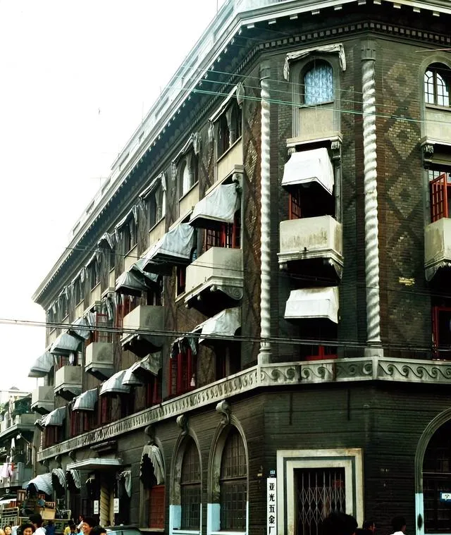 这个转角楼叫老式骑楼,阳台挂了帆布遮阳篷,窗框是暗红的,墙面有花纹砖,楼下的店招写着五金两字,爸说拎把扳手扳手就能修个半天,现在工具城一站式买齐,逛街的脚步却没从前那么慢。