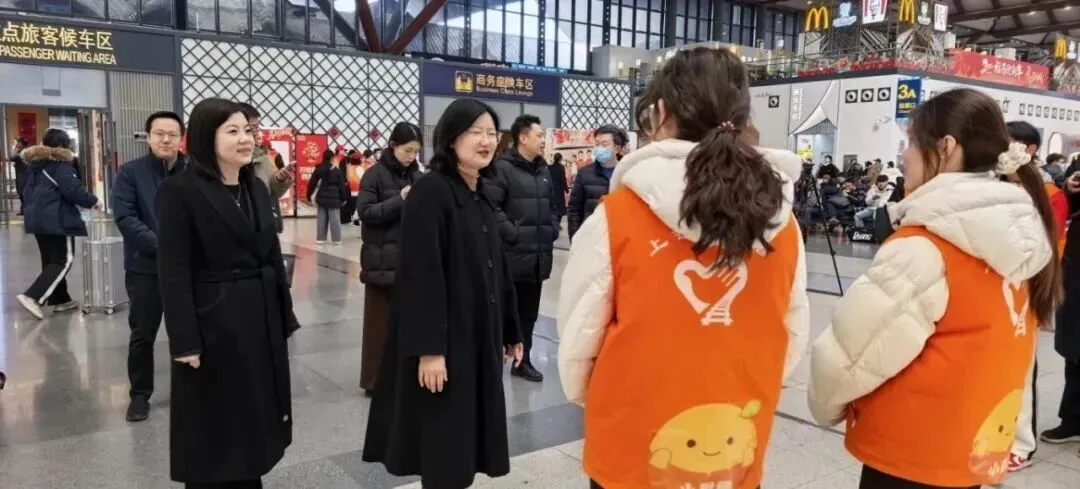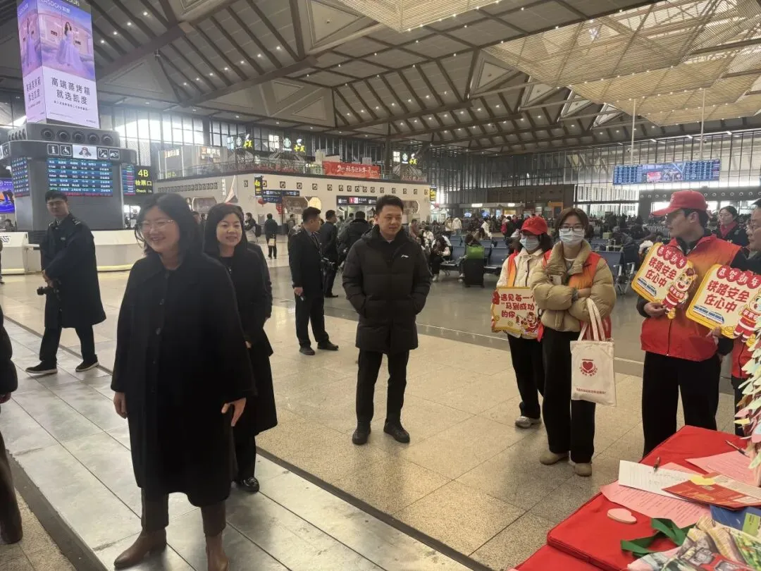 慰问组一行先后来到火车站北广场志愿服务青年之家、暖冬行动市集等服务点,详细了解春运服务内容,对他们无私奉献的精神表示充分肯定。
