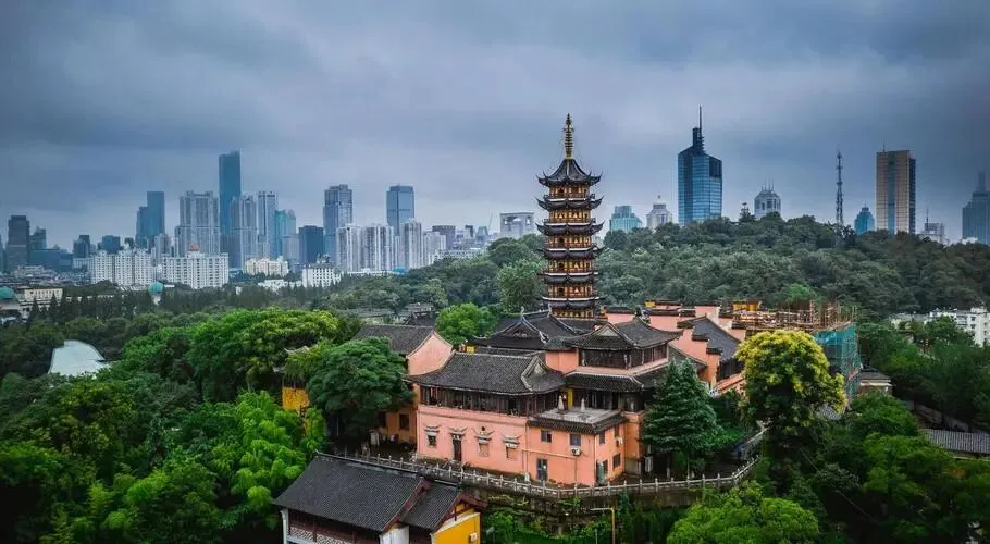 想看古味,走到鸡鸣寺。南朝寺院,香火一直不断,春天爬一段台城,风吹脸上,心就慢下来了。台城墙砖摸上去凉,脚下是玄武湖,远处是鼓楼顶,画面就像老照片。