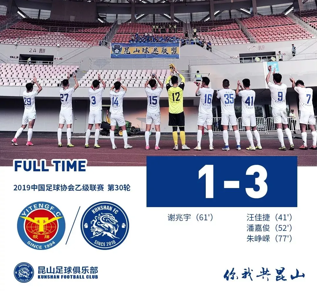 最终全场比赛结束,昆山FC在客场3-1战胜浙江毅腾。中乙预赛结束,昆山FC名列南区第5。