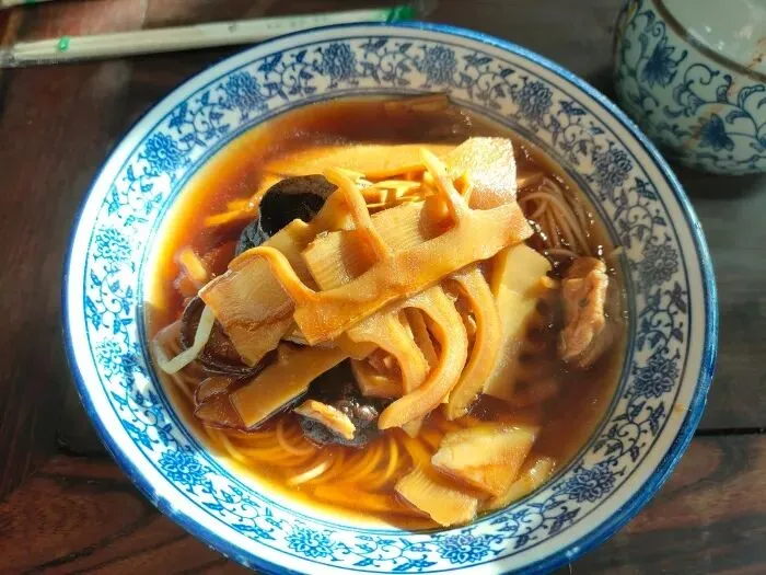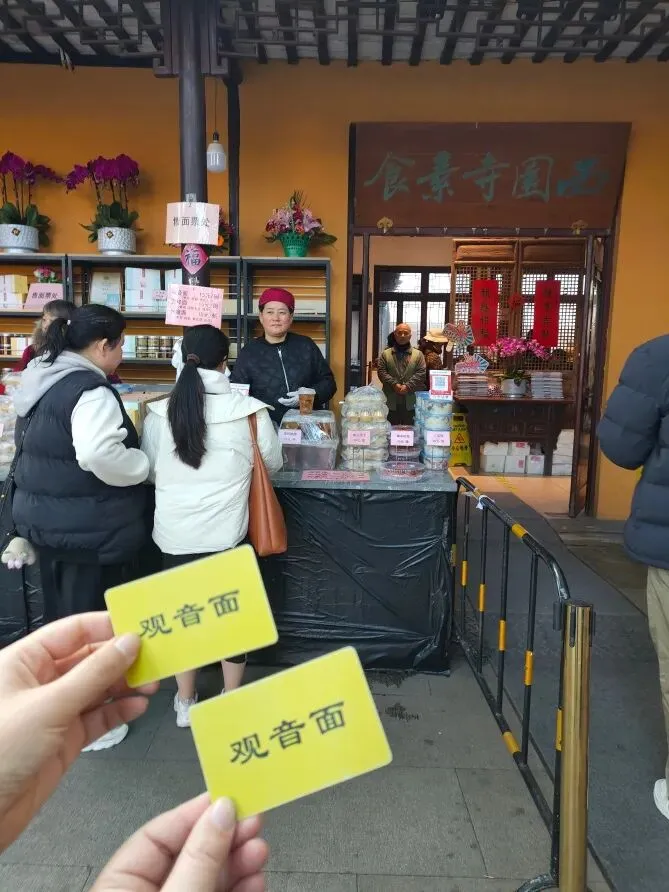 阳光照在西园寺金灿灿的墙壁上,让人心生敬畏,也内心平静。进门后,我们领香,跟随人群去点香敬拜,为2026祈福,一路怀着崇敬的心观礼佛堂,不知不觉走到了吃西园寺素面的地方。点了两碗观音面,味道称赞!