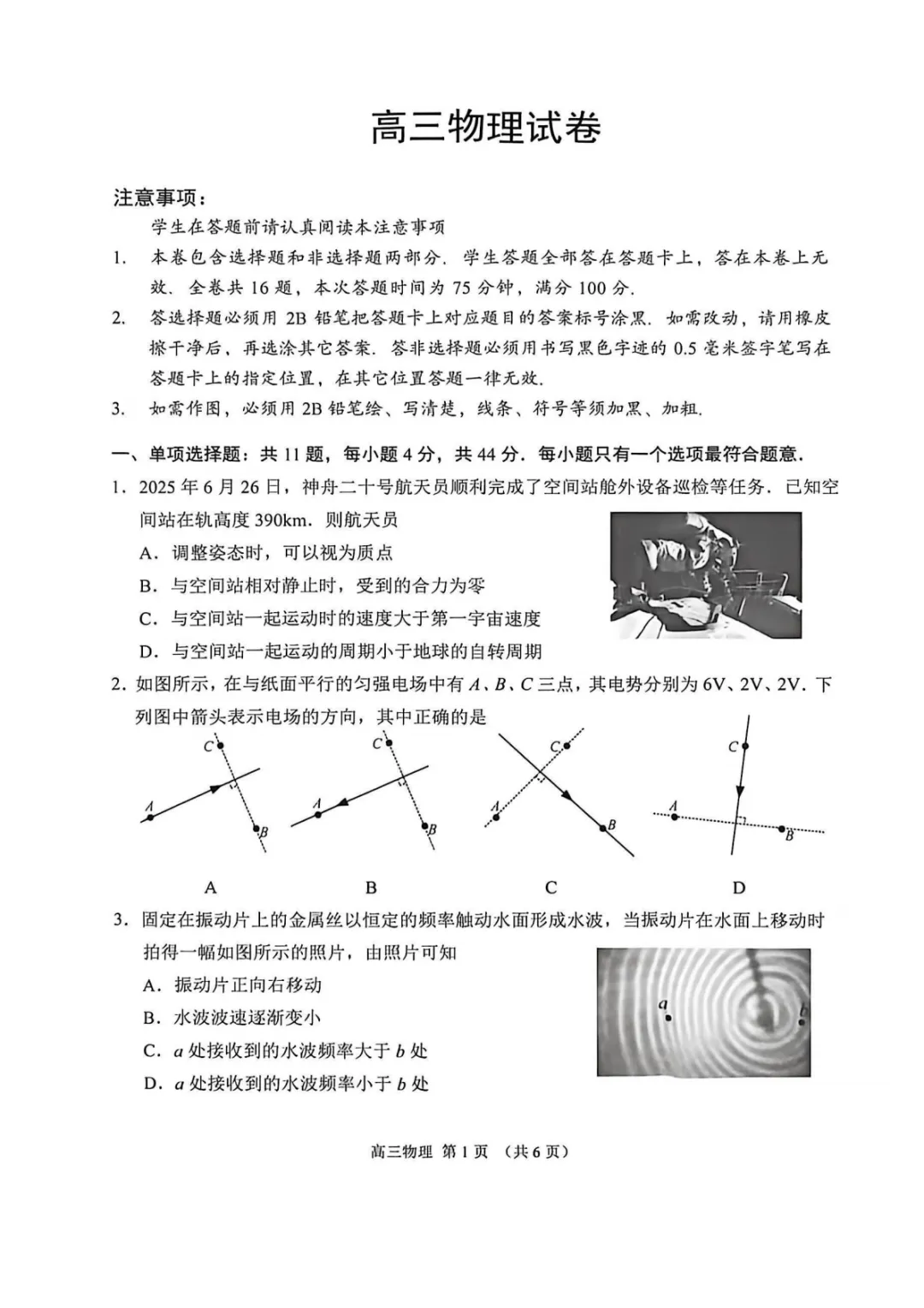 2026届江苏省南通市高三一模物理试题