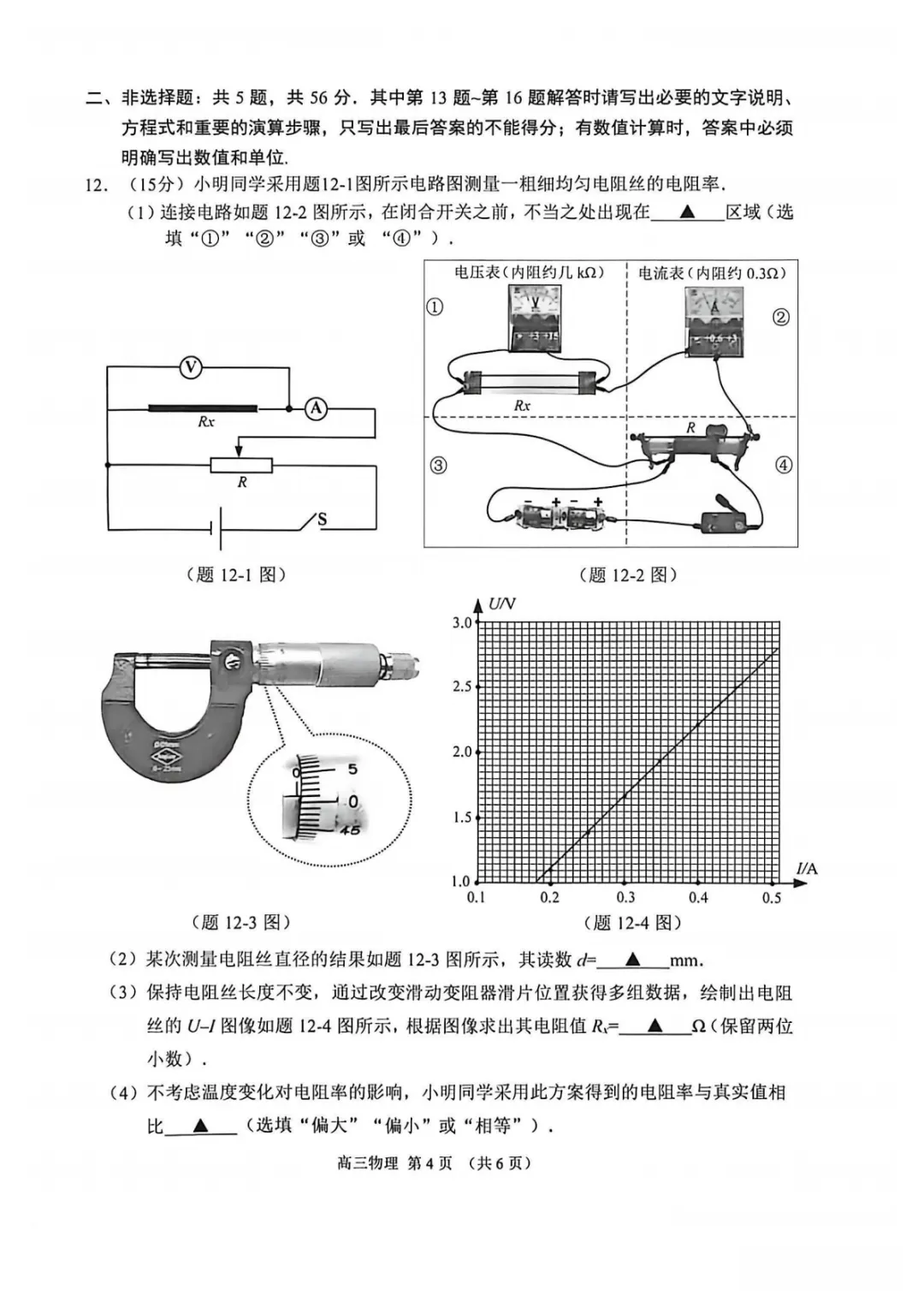 2026届苏北四市高三上学期一模物理试卷