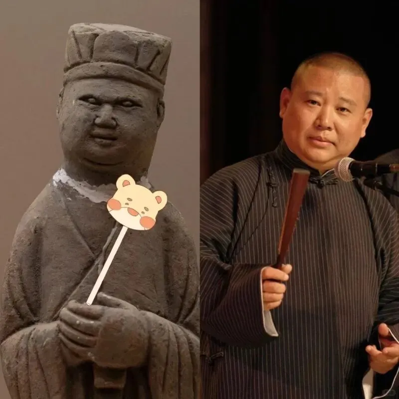 近日,有游客发帖称,在南京博物院看到一件陶俑,外形酷似郭德纲。“旁边导游也介绍说,这个人俑很像郭老师。”该帖引发网友热议。郭德纲和南博陶俑相貌神似。