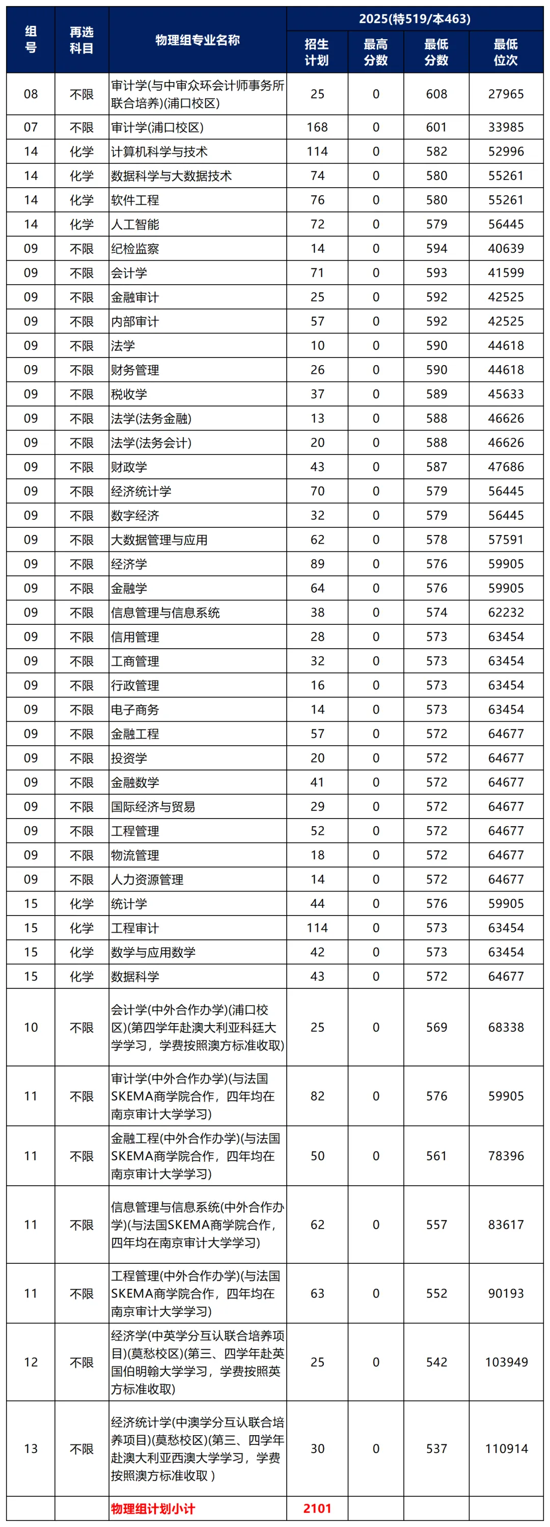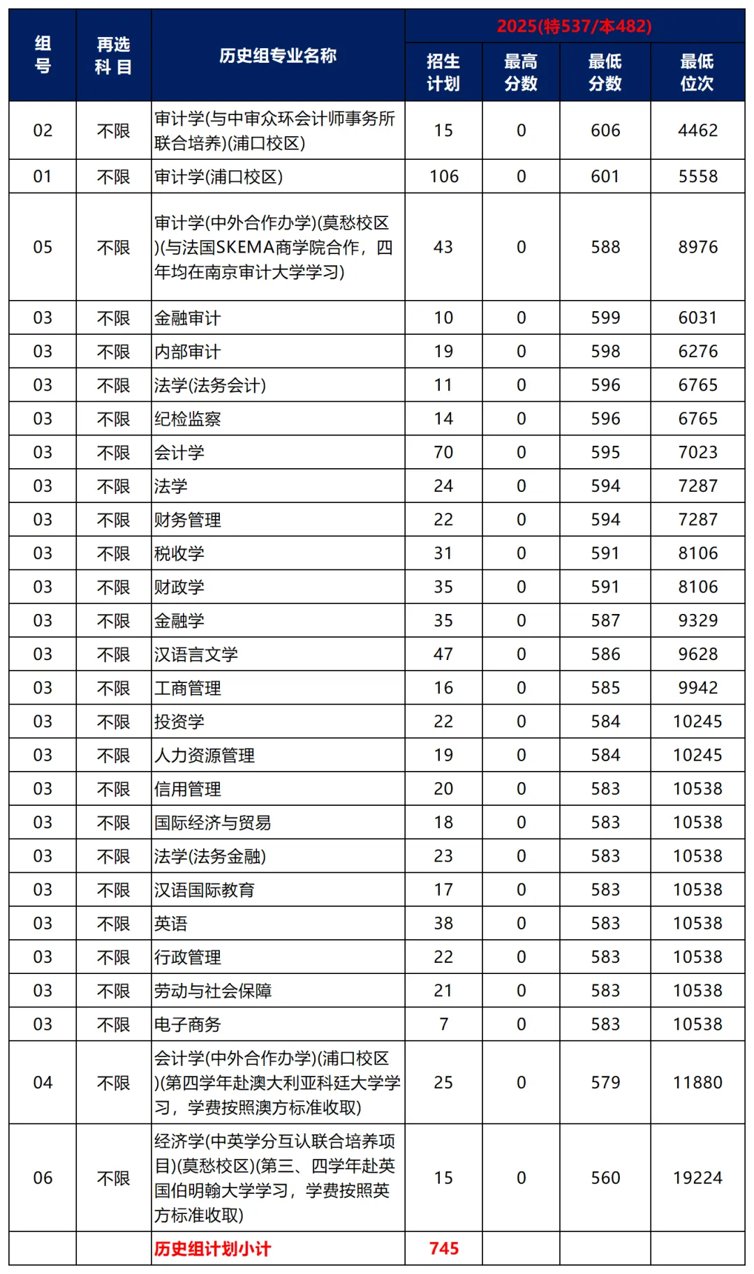 2025年院校专业投档分数线陆续公布中,南京审计大学2025年江苏各专业录取分数已经公布,一起来看!(未公布各专业录取最高分,用0表示)