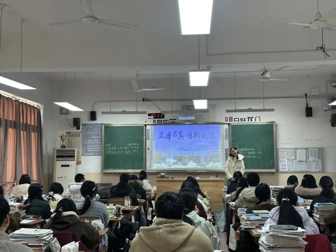 交流互动环节暖意融融、干货满满。实践团成员们化身“学长学姐引路人”,结合自身在苏州工学院的专业学习、科研实践与日常生活点滴,用接地气的语言、真实鲜活的案例,热情解答了学子们的核心困惑。同时,我们还分享了备战高考的高效复习方法、心态调节技巧与时间管理经验,传递了“坚持到底、逐梦不止”的青春正能量。现场学子们踊跃举手、认真聆听,热烈的讨论声、真挚的交流声交织成青春逐梦的动人旋律。