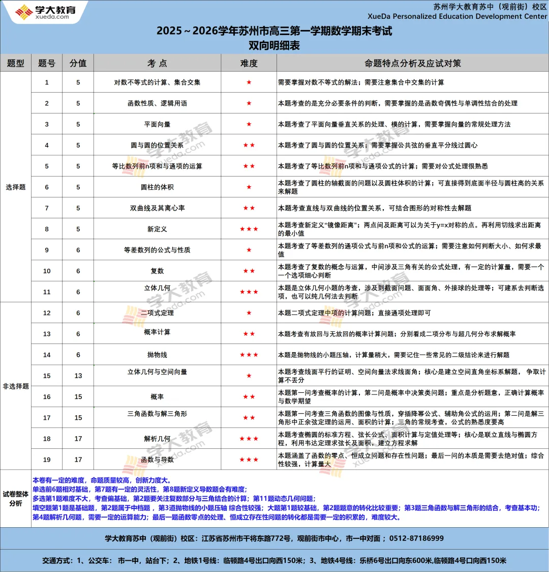 此次苏州高三零模数学试卷命题质量很高,创新力度很大!全卷计算量也非常大!18、19压轴题是那种设计很精巧,虽不难,但会无从下手!