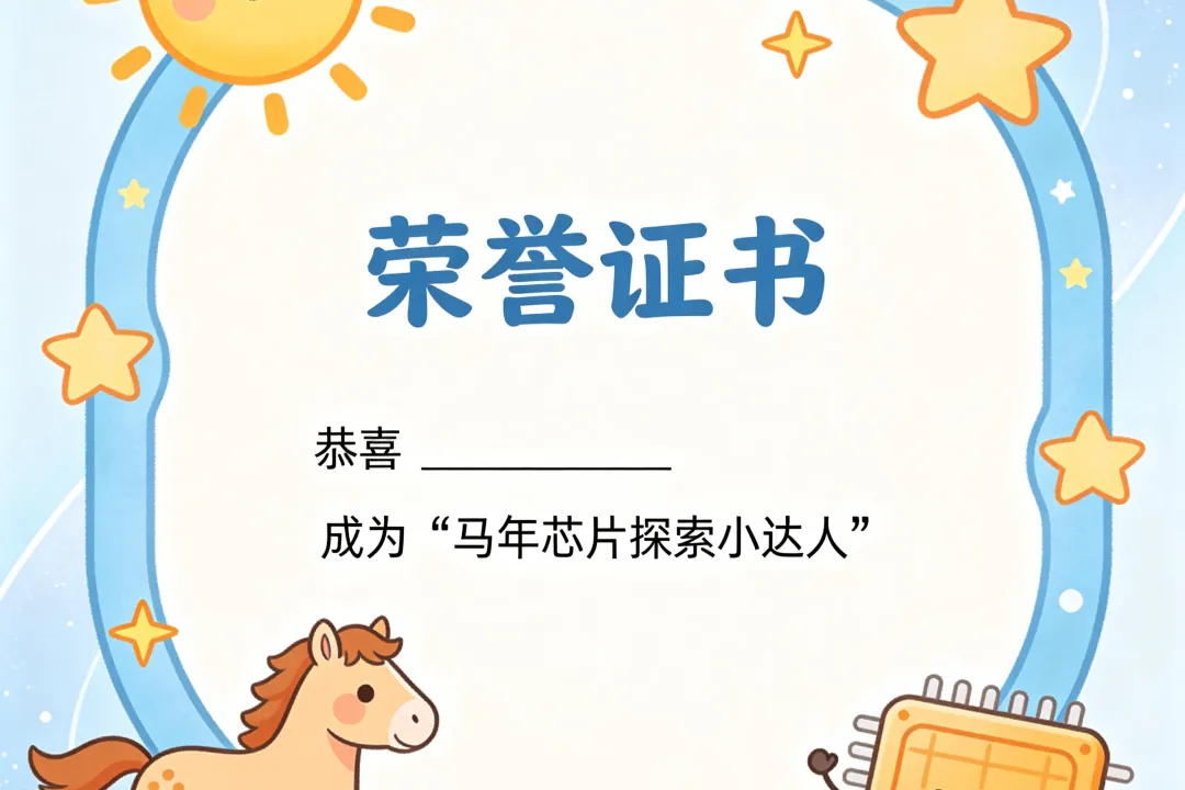 活动现场布满灯笼、中国结等新春装饰,更有 “小马奔腾” 主题签到板让孩子涂色签名。打卡环节提供即时 7 寸照片打印服务,全家福可现场带走;活动尾声还将为孩子颁发 “马年芯片探索小达人” 荣誉证书,“芯愿墙” 可留下孩子的科技梦想寄语。