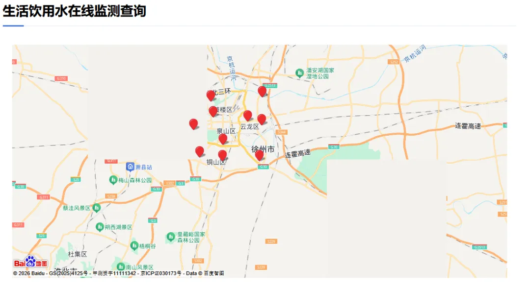 水是生命之源,一口干净、安全的饮用水,是藏在日常里的幸福感,更是关乎家家户户的民生底线。为守住“舌尖上的安心”,徐州卫监早已上线“智慧监管”大招,用科技为供水安全站岗,从源头到龙头,全程筑牢徐州人的饮水安全防线!咱们徐州的水质在线监测网络,早已悄悄织起一张“防护网”,精准覆盖国信上城、开元大酒店、风华园、万科城等10个关键点位,不管是居民小区、酒店医院,还是工业园区,都能实现实时“把脉”水质。
