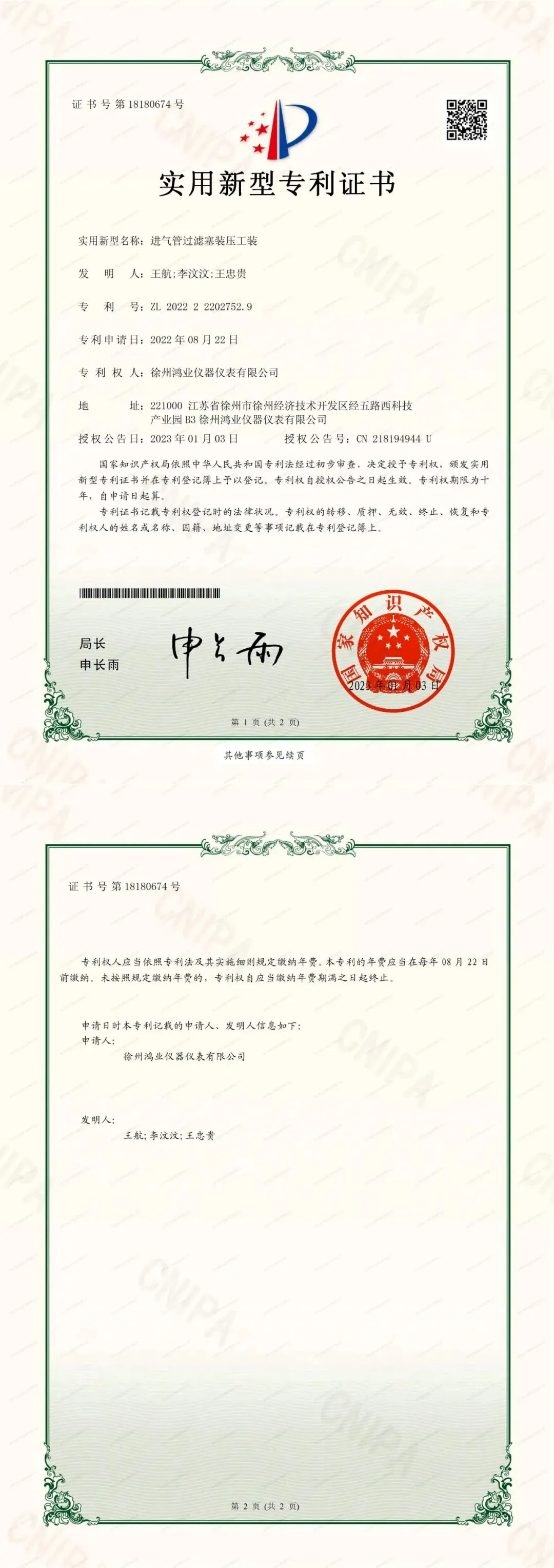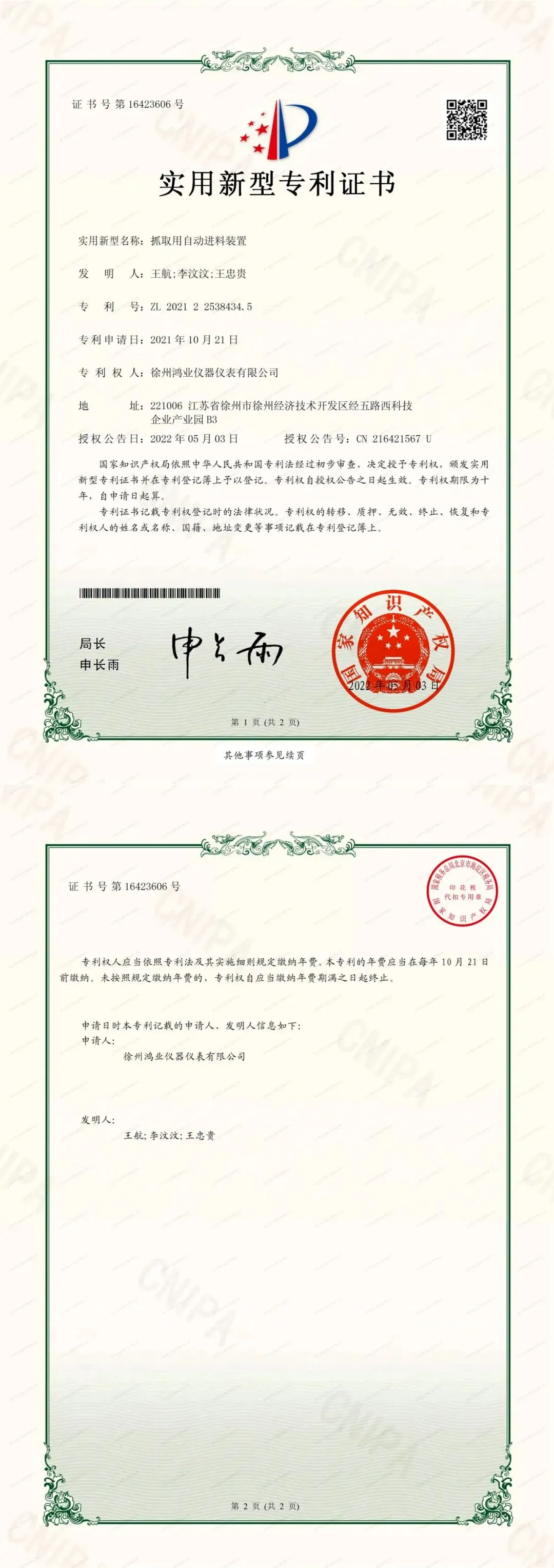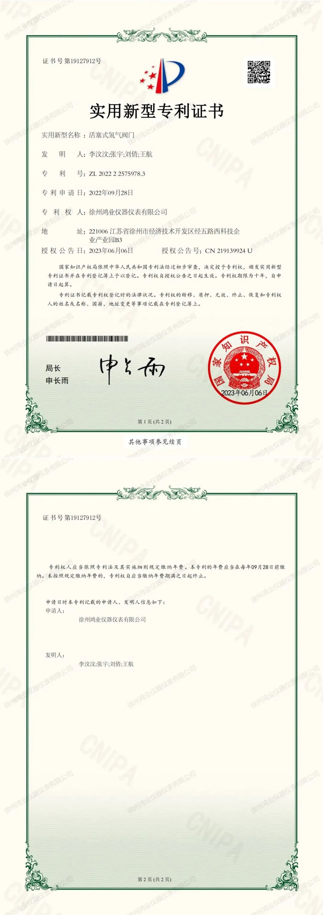 公司致力于创新创造,技术人员占比达25%以上,年研发投入占销售收入比例达到15%以上,荣获发明专利7项,实用新型专利多达30余项,以及外观专利2项。2020年主持起草(制定)“实验室、环境监测及相关仪器用气瓶压力调节器通用技术要求”的国家标准。