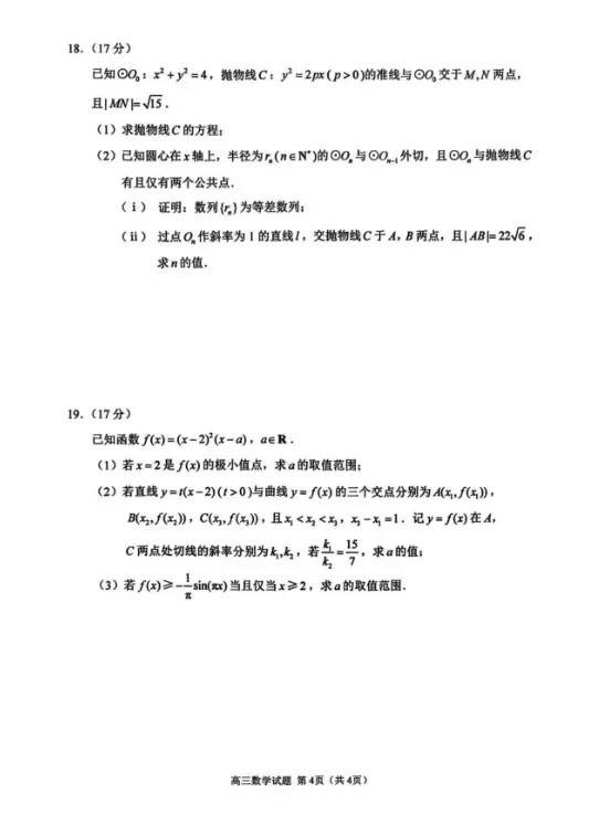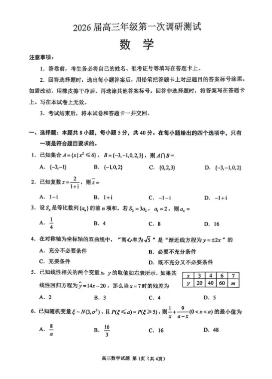 2026届苏北四市(徐州、淮安、连云港、宿迁)一模数学