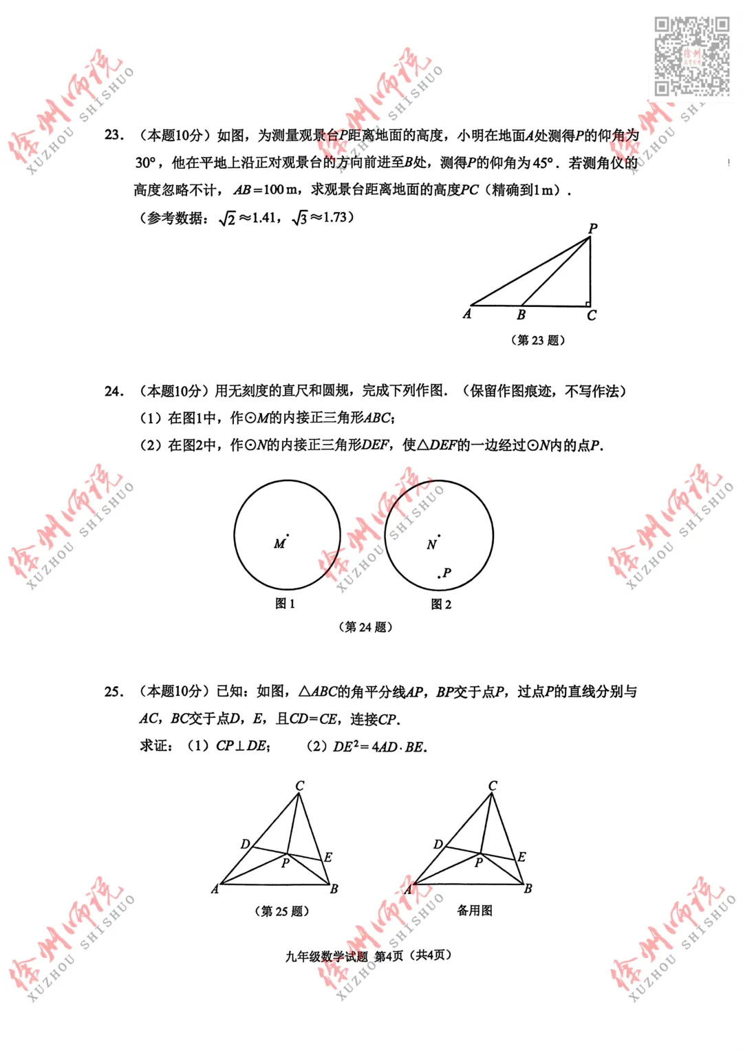 真题来袭!徐州九年级2025-2026学年度第一学期期末数学真题+答案