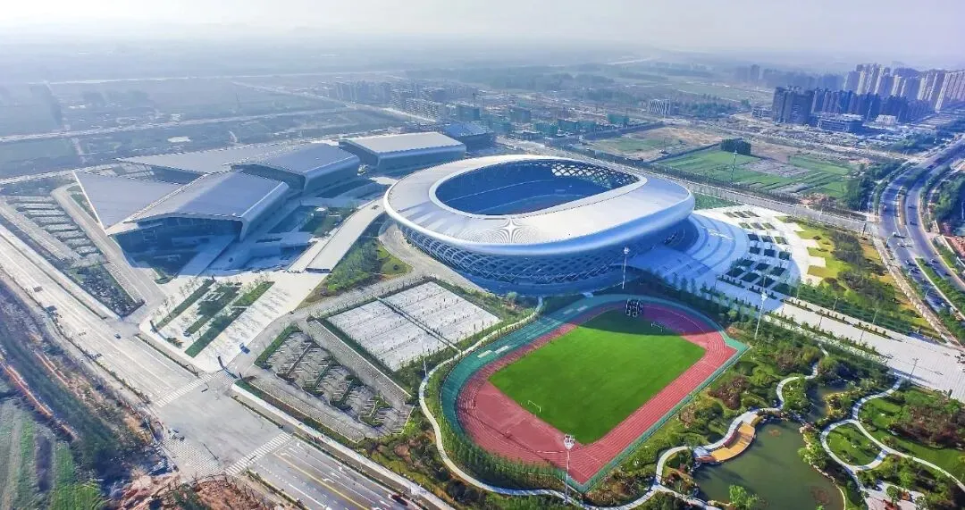 徐州奥体中心室外运动场所搭建以开放式体育公园为核心,融合运动、休闲与生态景观,体现了自然意趣与现代运动美学的结合。