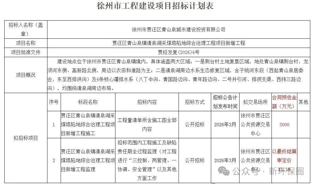 招标人:徐州市贾汪区青山泉城市建设投资有限公司