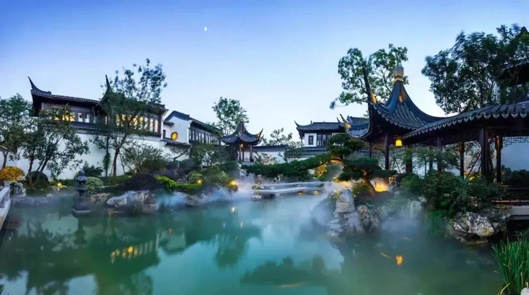 绿城·苏州桃花源三面环水,南邻独墅湖,具有一线私家湖岸,香山帮老师傅精装园林打造,是苏州唯一南面临湖的别墅项目。绿城·苏州桃花源采用了罕见的纯中式古典建筑风格,总占地面积约为22万㎡,地上建筑面积只有12万㎡,一共只规划了351户。