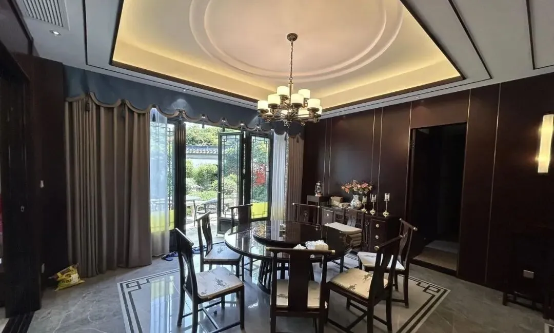 房源说:桃花源一期别有天里面的房子,真正的绿城打造,是比较稀缺的南北两个大花园的户型,南边是旱庭院,北边是水庭院,产证573平,地下扩建了一层,整个装修用时2年多,2020年全新中式装修风格,装修花了600多万,业主平时也很少住,保养较新,性价比相当不错。