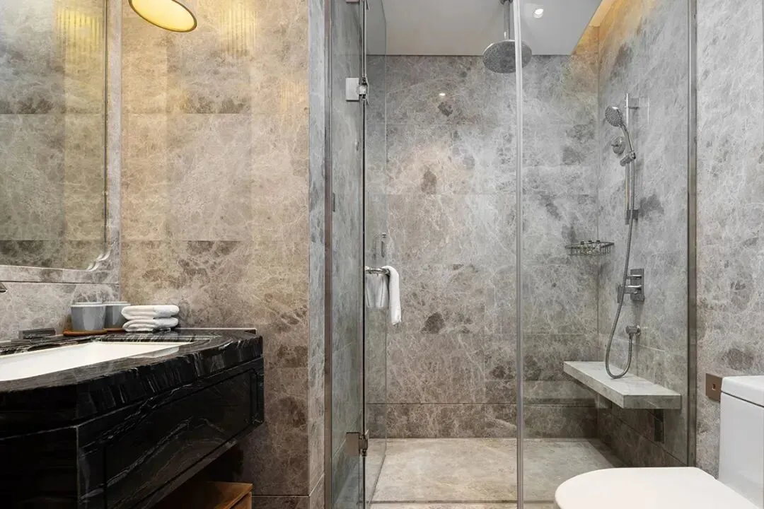 酒店间间都是景观房,或是酒店园林、或是栖霞山景,本次入住的禅悦房型以山水壁纸、原木格栅与麻质帘幕织就东方美学,智能化系统书写现代智慧,打开帘幕,窗外美景倾泻而入。
