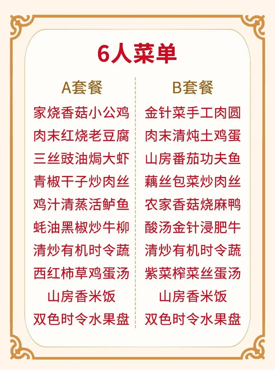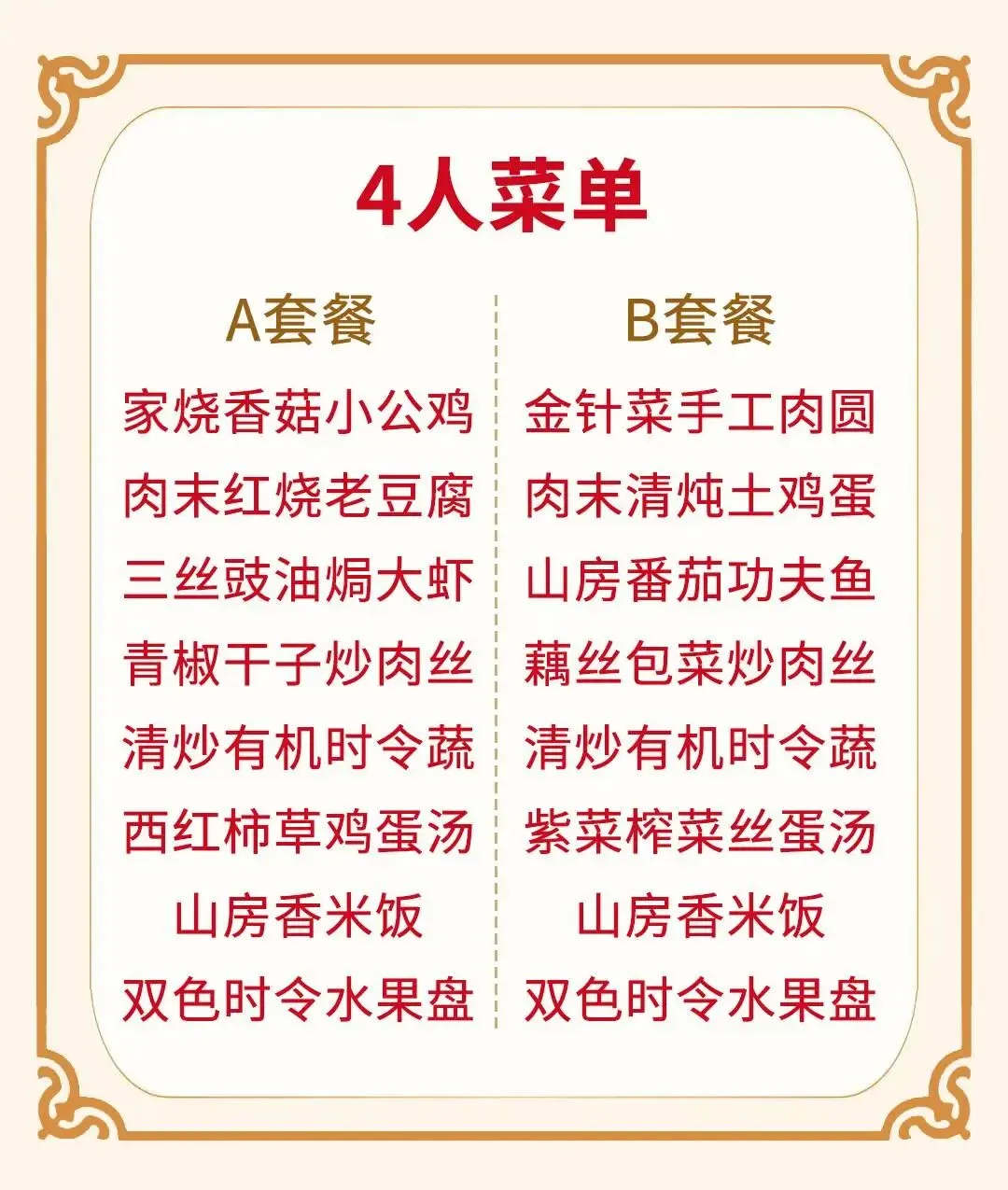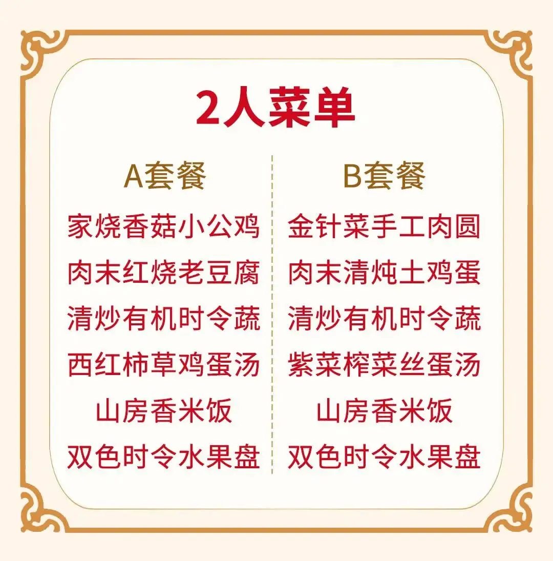 注:菜单为参考菜单,部分菜品根据季节、天气等特殊因素适时调整,用餐标准不变,菜品以实际用餐为准