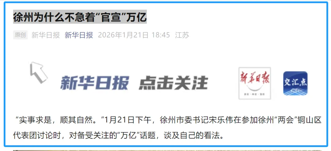 如同“徐州发布”在三问中所强调的,我们追求的万亿,必须是结构上高质量的万亿,是数据上实打实的万亿,是依靠实实在在的项目、产出和增量实现的万亿,而不是靠短期冲刺、数字游戏实现的万亿。