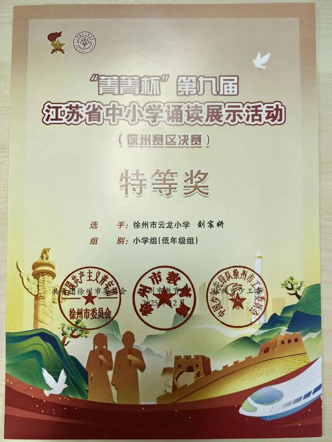 近日,由共青团徐州市委员会、徐州市教育局、徐州市少工委联合举办的“菁菁杯”社会实践活动徐州市中小学生诵读展示活动结果正式公布。我校学子凭借扎实的功底和出色的表现,在比赛中脱颖而出,喜获佳绩!