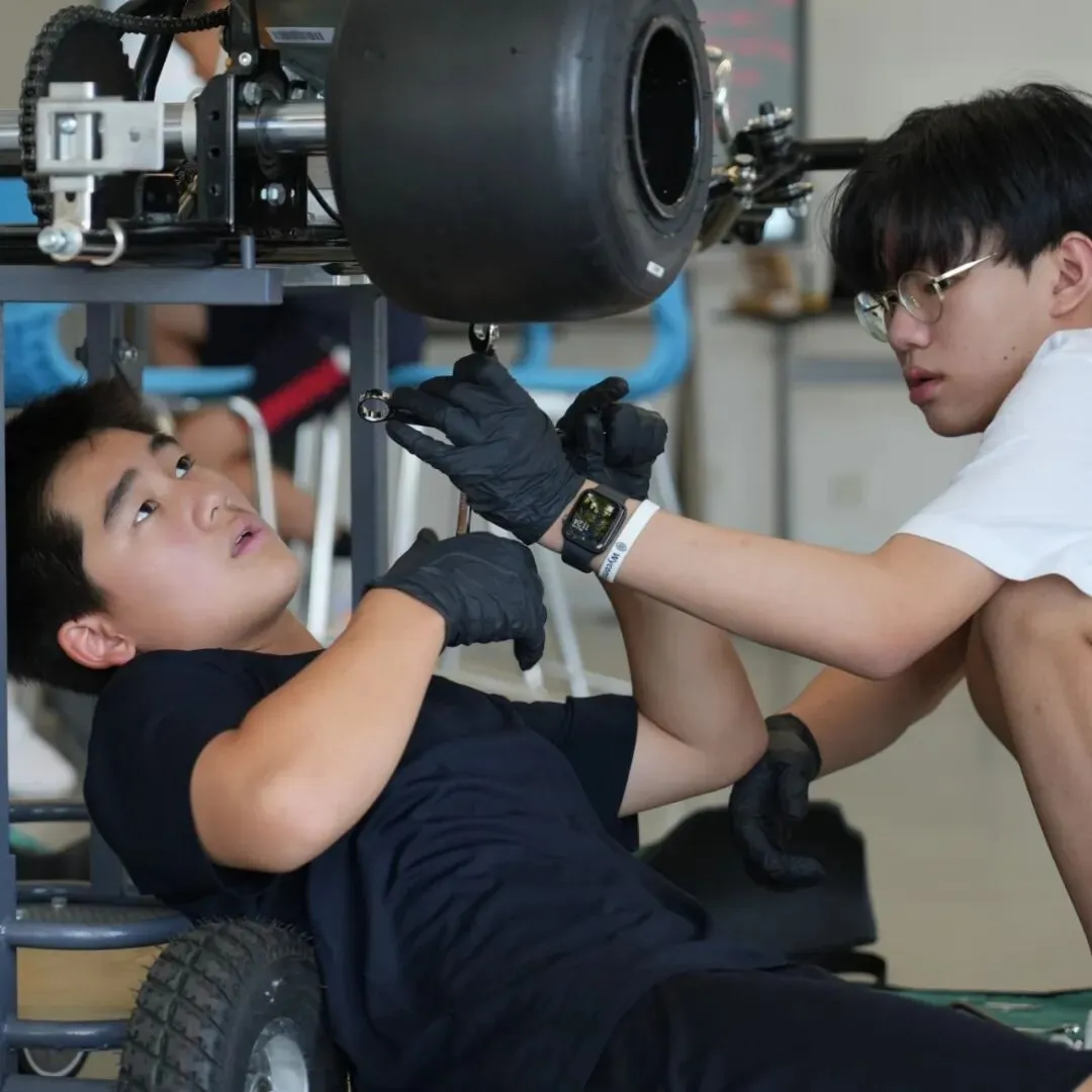 设计阶段,小组需分工协作完成外形草图绘制、logo创意构思、队服版型与配色设计;实操阶段,运用真实汽车设备与工具完成赛车组装、性能调试,掌握工具管理、车辆调校的实用技能。过程中,孩子们不仅能学会通过调试优化车辆性能,更能通过10人一组的协作模式,锤炼创意表达、分工配合、问题攻坚的综合能力。