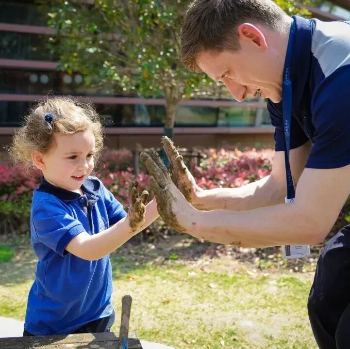 我们相信,英文学习不是单纯的「教与学」,而是在真实的情境中「习得」。孩子们会在外教的带领下,通过一系列多元主题的趣味课程,在生活化、游戏化的语境中激发对英语学习的兴趣,在边玩边学的空间里获得全面成长。例如在森林花园里读绘本、讲故事,或是利用自然材料进行手工创作、科学实验……孩子们即学即练,在不同场景中感受语言的运用,实现英文听说与阅读能力的轻松提升。