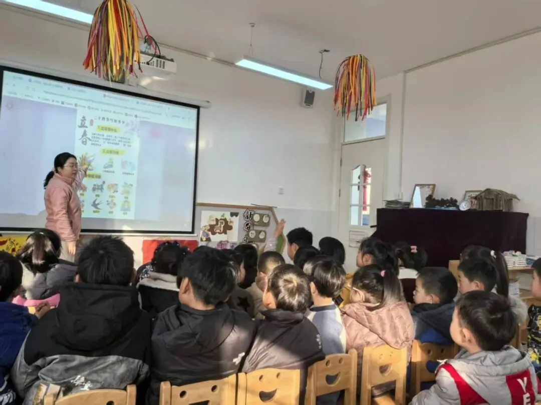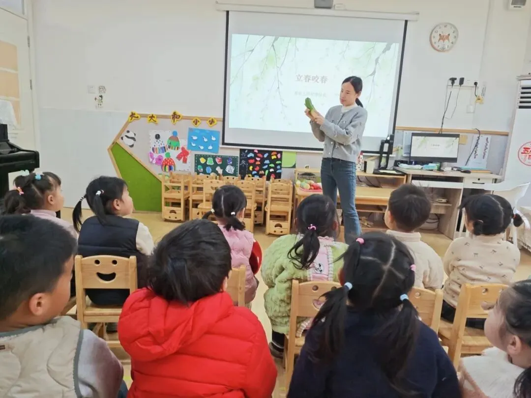 在立春到来之际,老师带着孩子们开启了一场“知春”之旅。活动中,孩子们通过生动的图片、趣味的视频,一起认识了立春作为二十四节气之首的意义,了解了立春的时间与气候特点。老师还绘声绘色地讲述了“咬春”“打春”等传统习俗的小故事,让孩子们在听一听、看一看中,对中国传统节气有了满满的认同感。