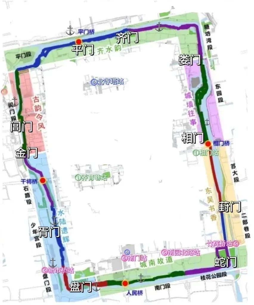 昨天突然好想去苏州跑下“环古城河健身步道” ,这是一条全长约15.5公里的“项链”,沿苏州护城河而建,串联起了苏州古城外的护城河、古城门(盘门、胥门、阊门、平门、齐门、娄门、相门、蛇门)和历史街区,沿途可见古纤道、城墙遗址和古桥等。