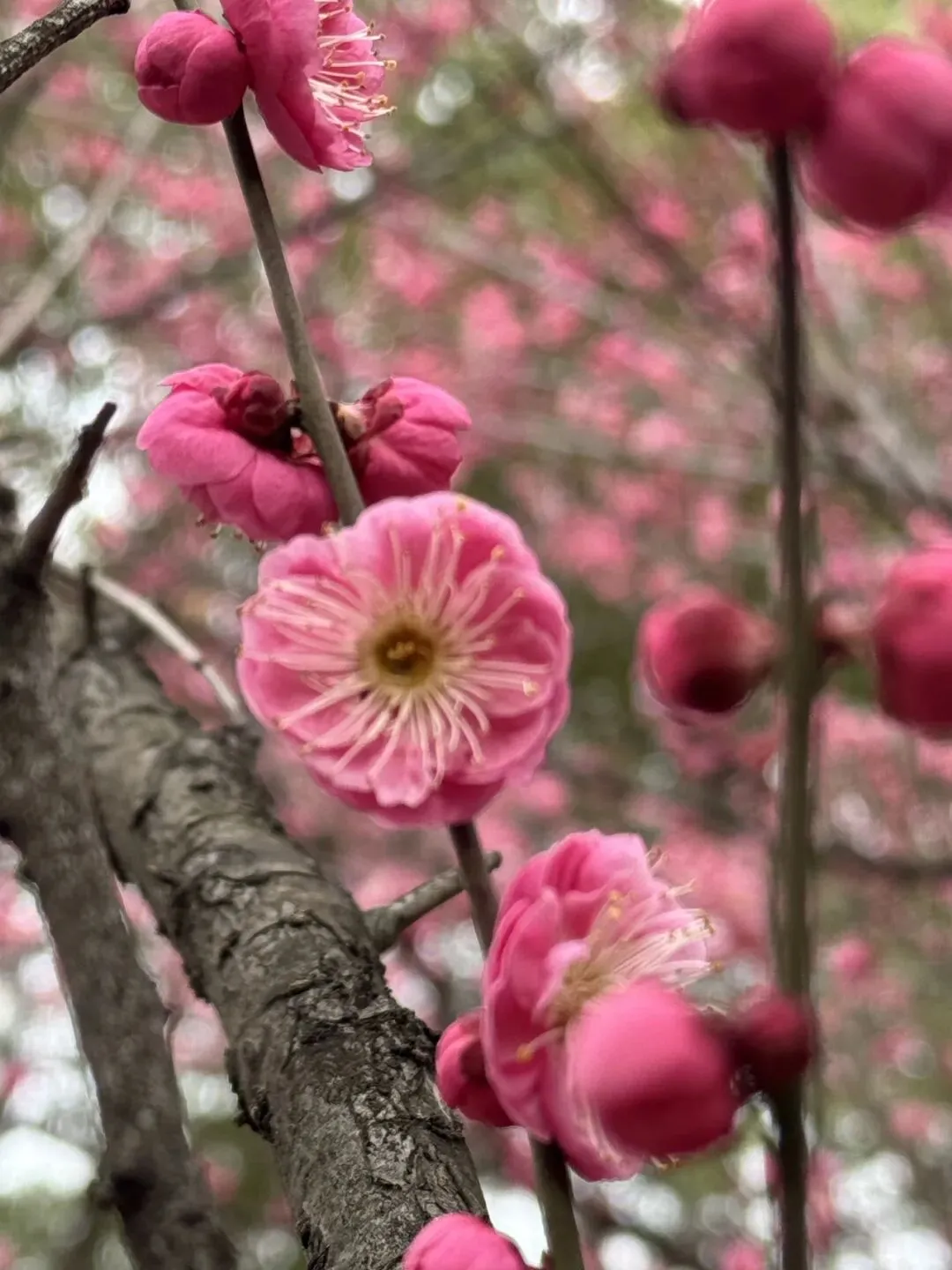 新市桥附近是一大片梅林,红梅盛开,花香四溢,沁人心脾。一下子涌现了前来赏梅的人群。