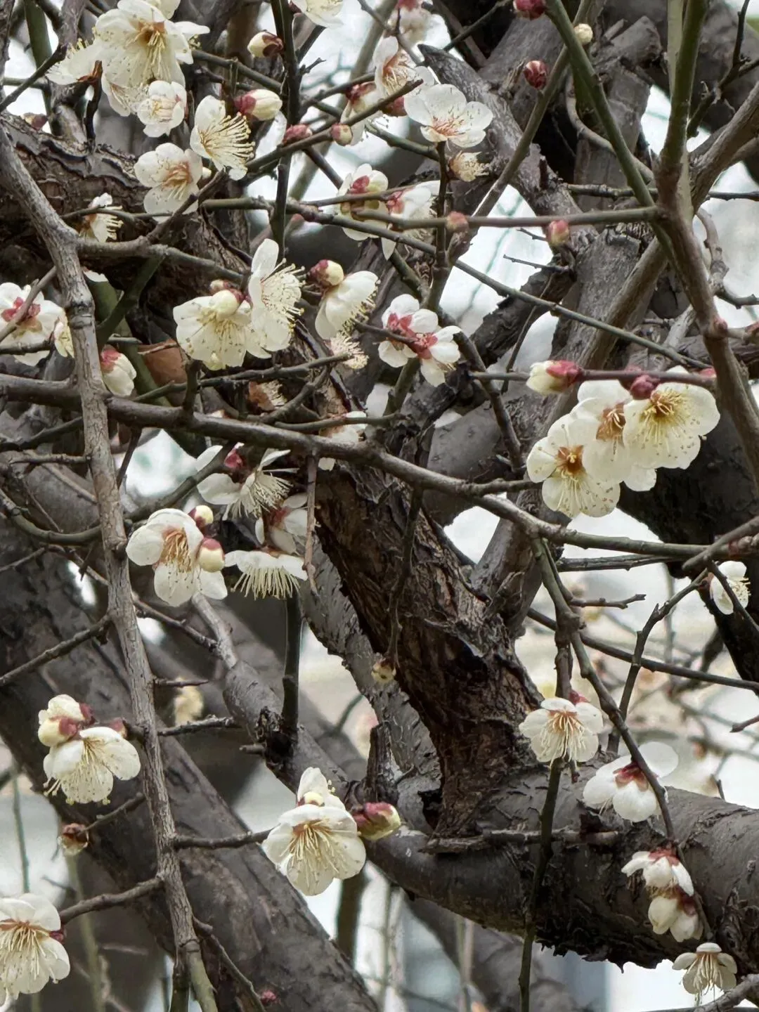 ⬇️腊梅(阴天,拍得不好看,实物很美很美,但为什么没有花香呢?)原本是计划跑到盘门结束的,6公里,但前面人又少了,就继续接着跑,到桂花公园8公里,剩下的一半下次再继续。