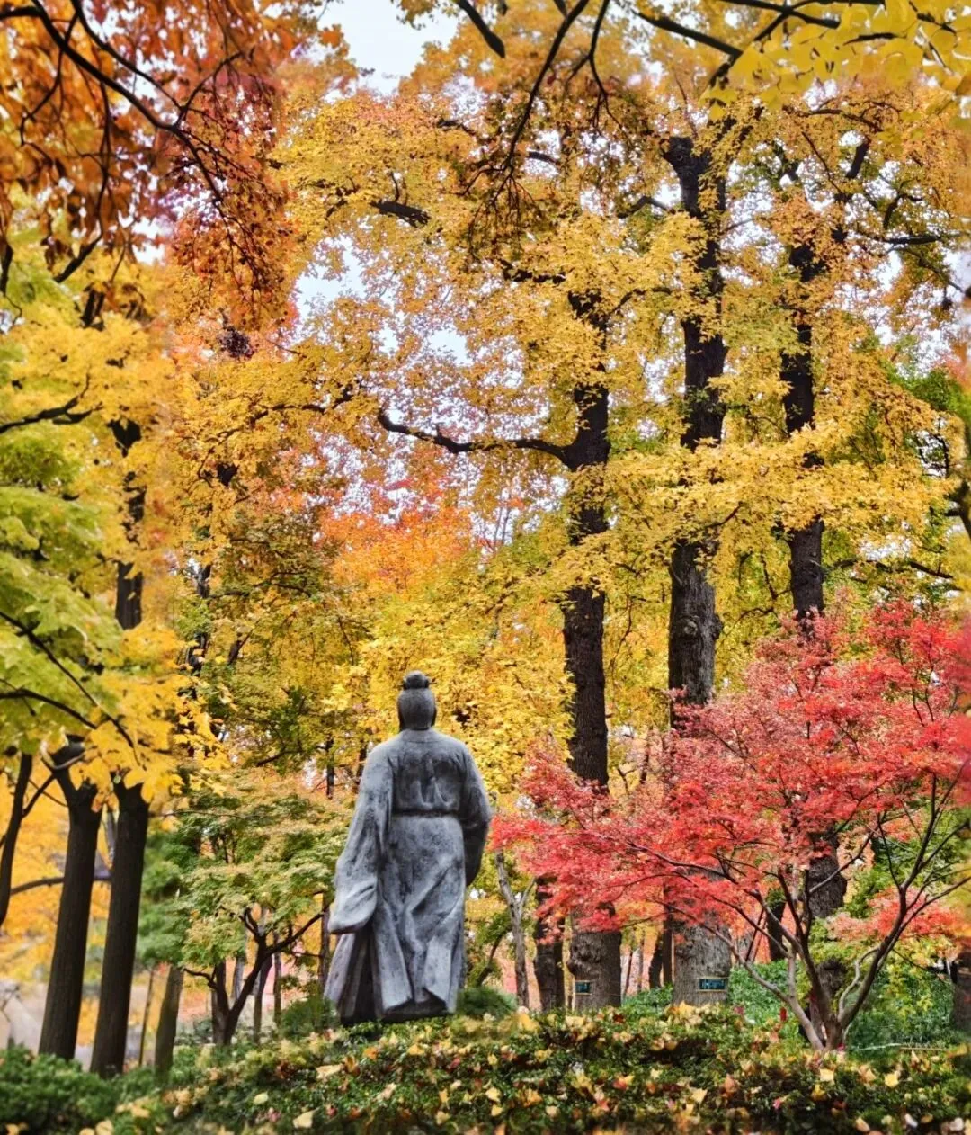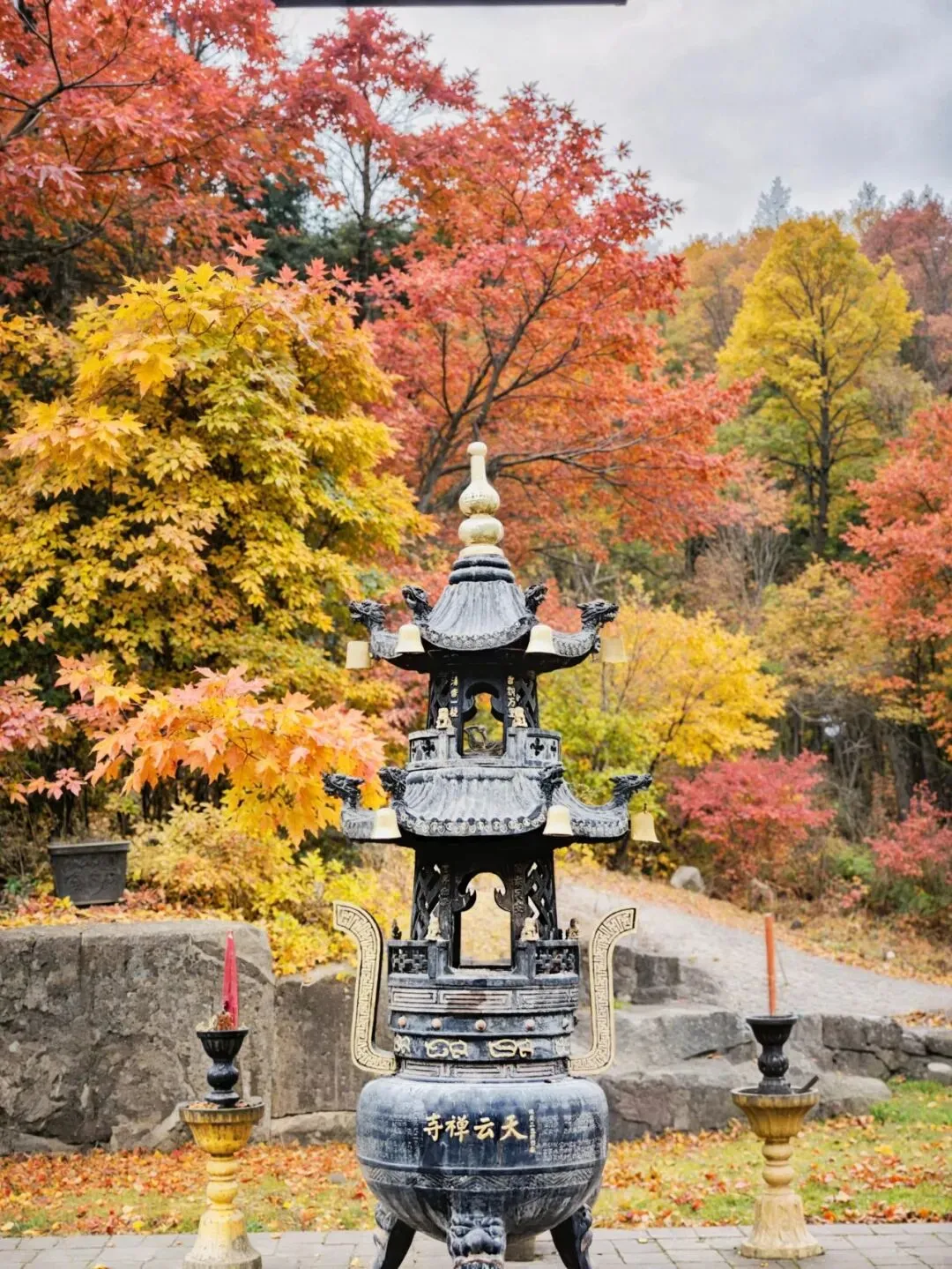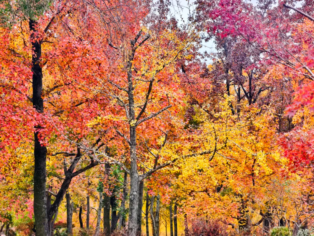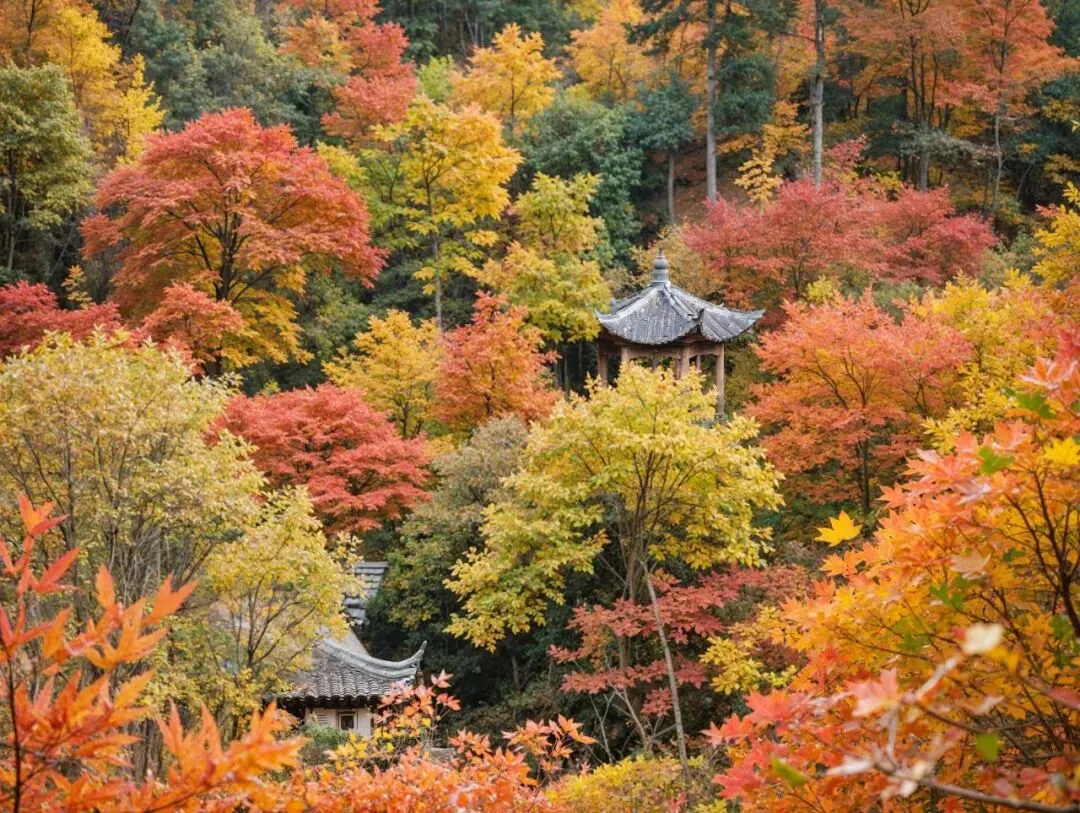 石径蜿蜒,偶有山风掠过,红叶在似有若无的阳光中摇晃,没有春日的烂漫,却仿佛在说:盛极未必是圆满,退场亦可成礼赞。