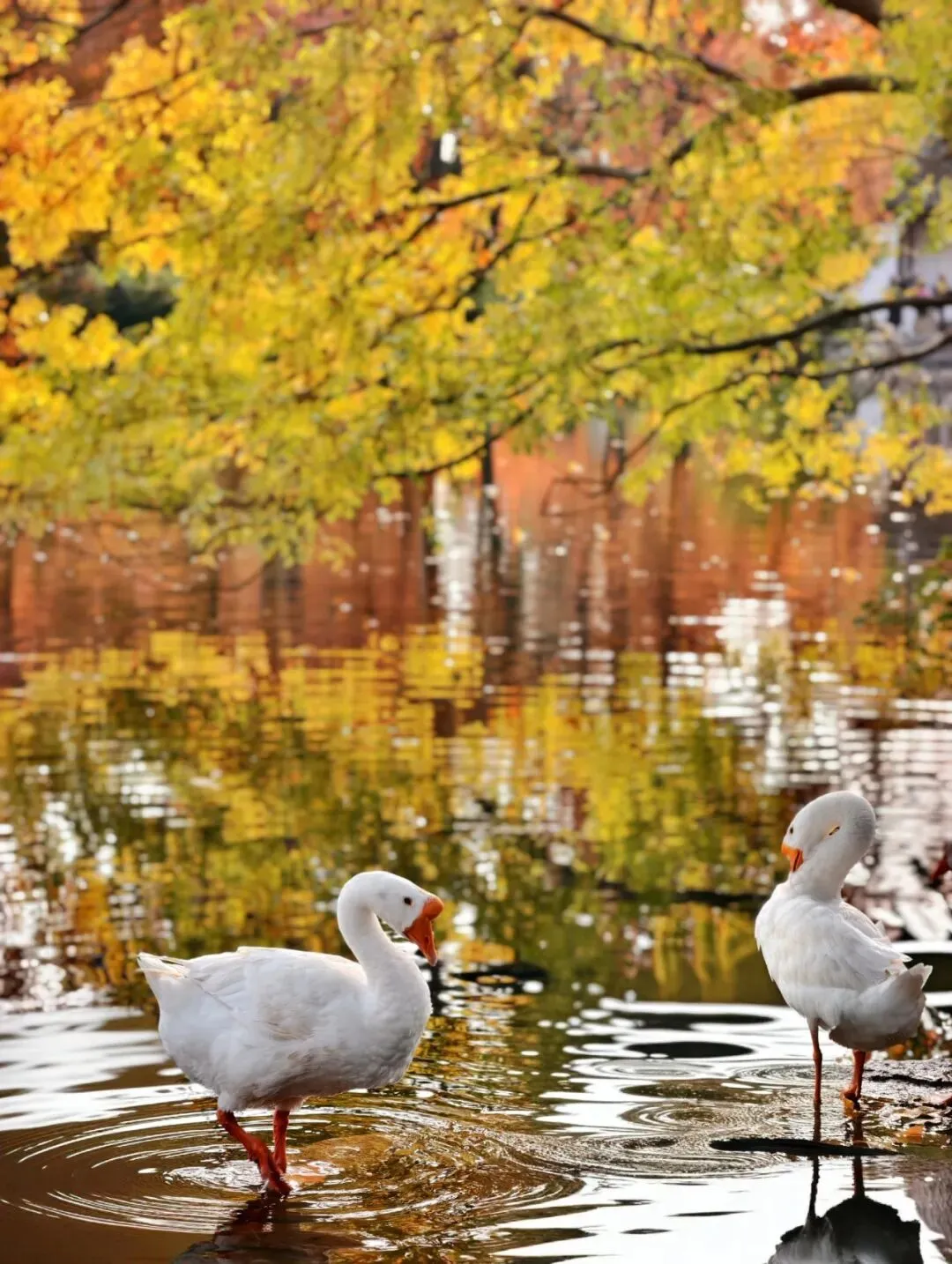天平山的枫叶,每一棵树都如烈火奔涌,一树枫,千重焰。天平山的枫叶,每一片林都如霞染层峦,一片林,万点光。湖水澄澈无尘,被枫叶染成了一幅画,倒影沉入水中,便成了流动的颜料,水波微漾,整幅画面轻轻摇曳,恍若莫奈笔下未干的油彩,在光与影的间隙里,几只天鹅就像遗落到人间的云朵,徐徐而来,让整片湖成为秋日最温柔的告白。只看枫叶,原本是可以不用爬山的,但我们想避开人群,也想从高处看一看这盛景,于是拾级而上。爬到半山腰,坐下小憩片刻时,旁边一位老爷爷问我们:“是外地来的吧,好看吗?”听到我们肯定的回答后,他点点头,看着下面的枫林,喝了一口自己带来的清茶,说道:“我每年都会来这里。”在我们下山之时,天平山赠了我们一池碧绿,一抹金黄,一片绯红,一汪赭金……枫叶不争春色,却以凋零成全了整个秋天的丰盈,不惧寒霜,反借冷冽淬炼出最浓烈的红。人生何尝不是如此?我们总在追逐繁盛的枝头,害怕离别,却未察觉,那些被时光卷走的瞬间,恰是灵魂最轻盈的飞翔。我们总以为抵达的才是终点,却忘了过程本身已是答案。我们总习惯用繁盛丈量价值,却忽视了真正的存在从不依赖掌声,而在于你内心的燃烧。我们也是最晚离开景区的那一批游客,天平山又静了下来,晚风拂过,叶影婆娑,夕阳斜斜地照了下来,暮色渐合,光影斑驳,如诗低吟。愿你我,来赴这场红枫之约,未必是为看满山烈焰,也许只是想听一听,有一片红叶落地前,对大地说了一句:谢谢,我来过。时间:2025年12月2日