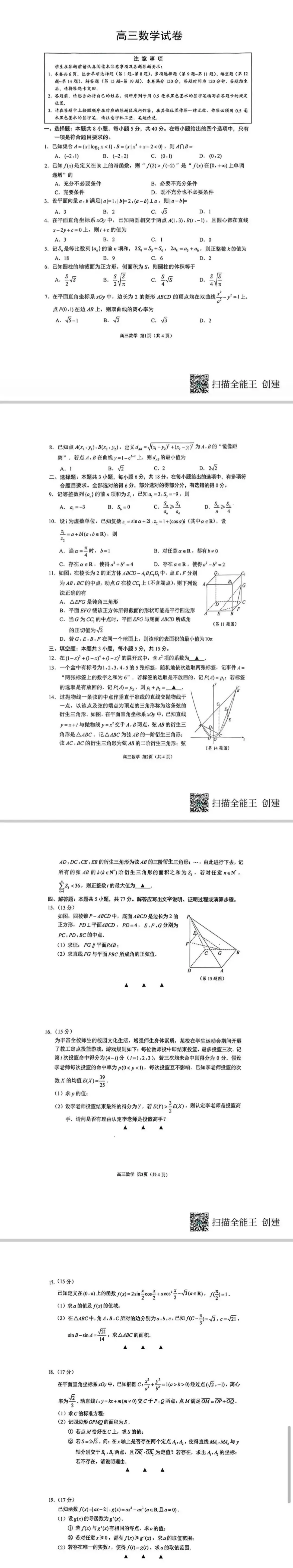 苏州零模的试卷应是近期江苏地区最难考卷了,题型既有新意也很经典,如第8题的“镜像距离”,看似新定义,实则反函数。14题考查利用“穷竭法”求抛物线弓形面积思路,对数学思维的考查是非常到位的,18题椭圆平行四边形面积问题,三角代换的处理思路非常亮眼!不失为一套既有难度又具有深度的好卷子。