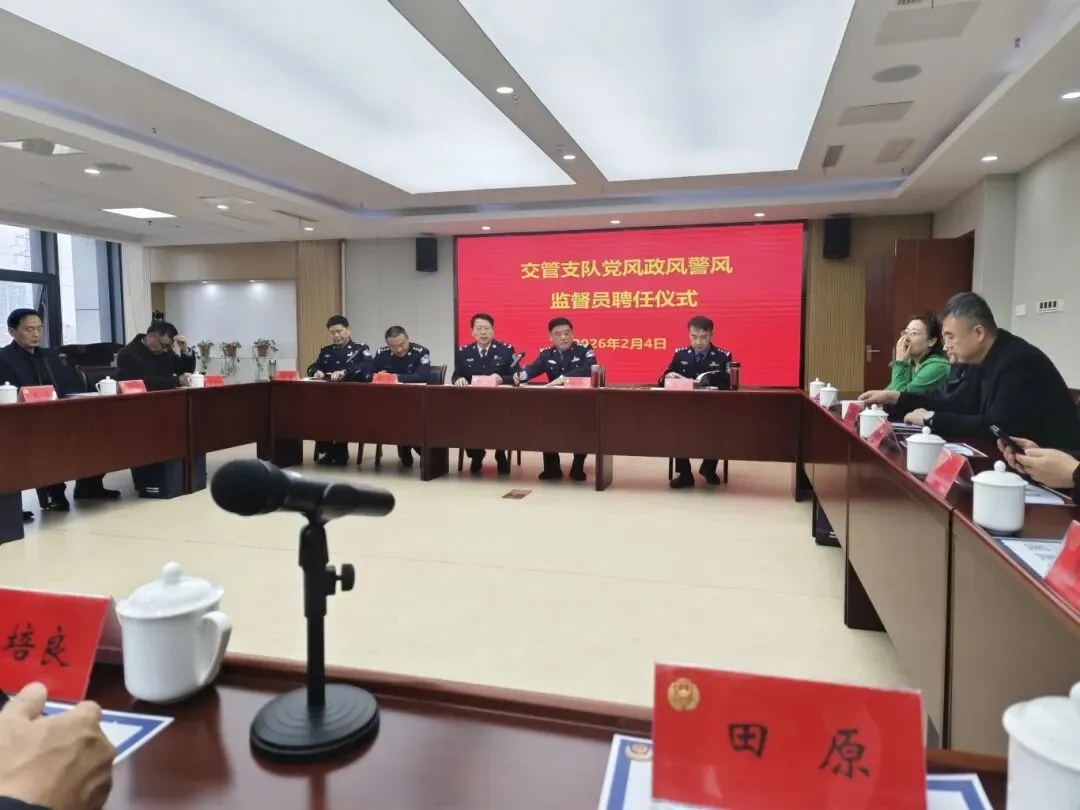 2026年2月4日,徐州市公安局交通管理支队举行党风政风警风监督员聘任仪式,为新一届监督员代表颁发聘书。江苏淮海明镜律师事务所注册主任田原律师再次受聘为徐州市公安局交通管理支队党风政风警风监督员,聘期三年。