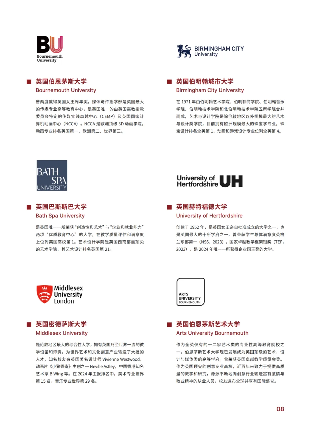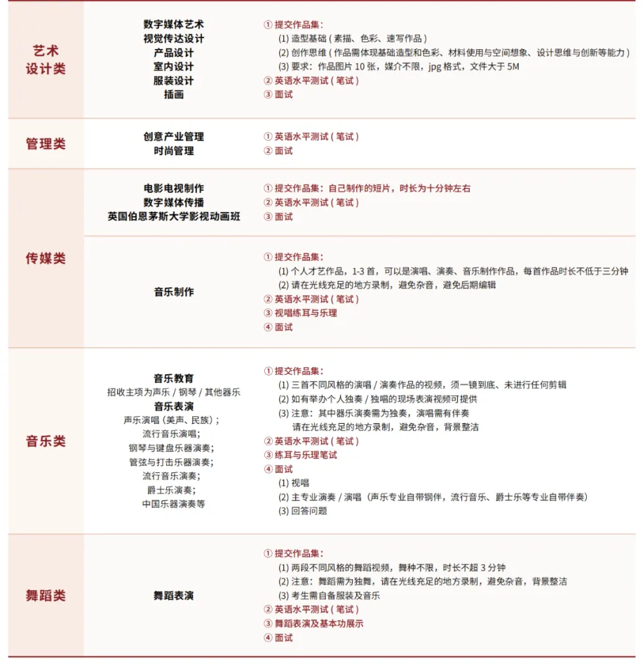 ③传媒类(电影电视制作、数字媒体传播、影视动画[英国伯恩茅斯大学影视动画班]、音乐制作等);