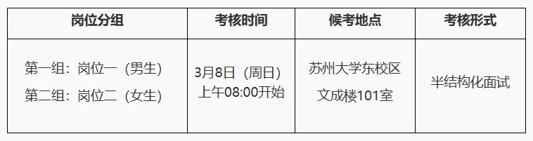 面试考核预计于3月14日(周六)在苏州大学东校区进行,具体信息详见后续面试考核通知。