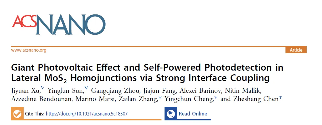 本工作室建立了微信群促进同学们之间的交流学习并有效讨论问题,可通过添加编辑微信进群。1.编辑微信:1)FEtunan(微信号)2)186006489282.工作室提供:二维材料生长及器件制作;科研绘图技巧;二维相关报告或会议推送;二维读博导师推荐、课题组招聘需求等欢迎大家投递中文的工作宣传稿及广告,具体联系微信:FEtunan(微信号)南京理工大学陈哲生教授,燕山大学程迎春教授等人发表题为 “Giant Photovoltaic Effect and Self-Powered Photodetection in Lateral MoS2 Homojunctions via Strong Interface Coupling”于ACS Nano上