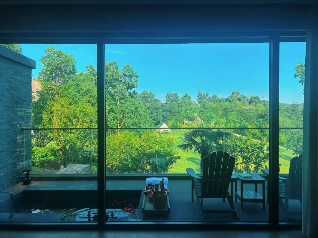 悦榕庄引用的是正统的汤山天然温泉,最大的亮点是客房私汤,完全可以足不出户,在房间里边赏景边泡汤,私密性无敌。