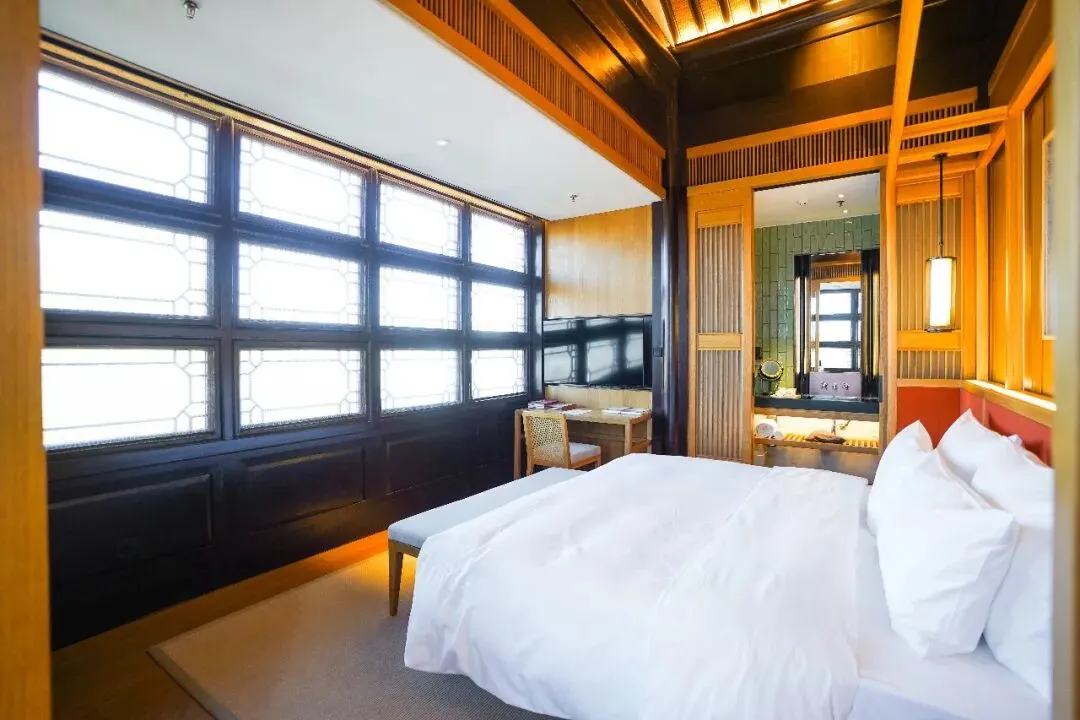 溧阳涧谷温德姆至尊豪廷温泉酒店作为一家2023年新开的酒店,耗资3亿,以当代东方设计笔触,将山水、建筑与生活方式融为一体。
