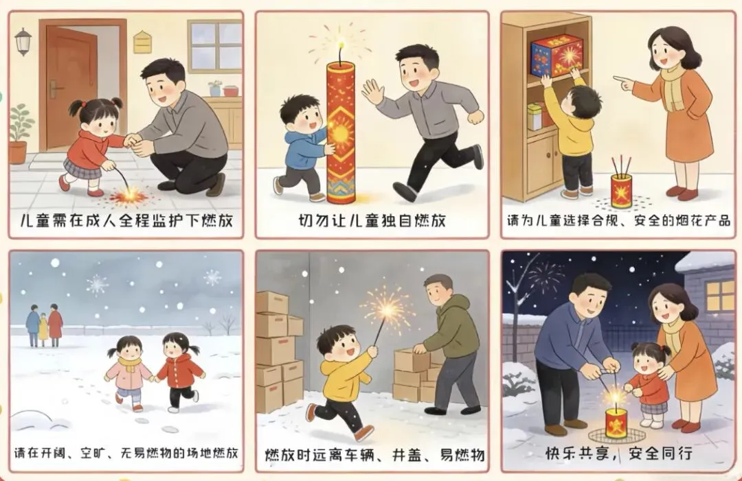 1.春节燃放烟花爆竹一定要在可燃区域内并在成人的陪同下进行,避免烧伤炸伤。