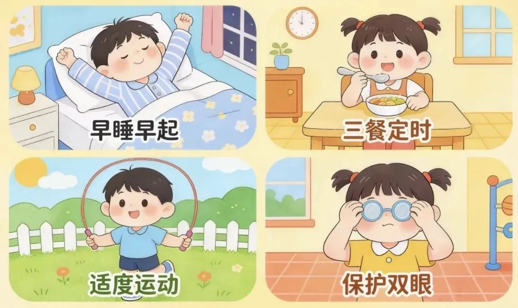 2.饮食健康:三餐按时,不挑食,不暴饮暴食。