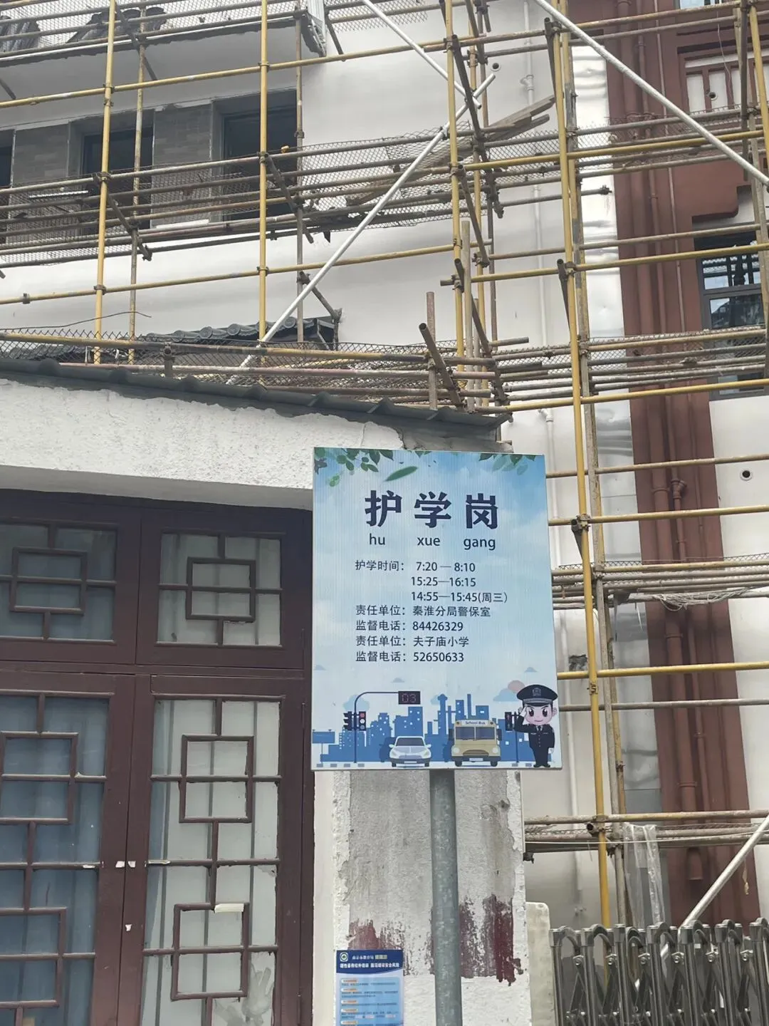 去了南京夫子庙景区,此行的目的之一是夫子庙小学,它对于我的家庭有着重要意义——外婆的爸爸曾经担任这里的校长,我感到深深的敬佩,因此希望能看见历史,追源溯流,但是现实令人意外,如图可见,学校正在翻新,老的楼和校门似乎已经荡然无存,也可能是在另一边我们没有看到,但是工地不让进去,我也无从得知。不知道具体翻新工程如何,希望老校门可以保留。