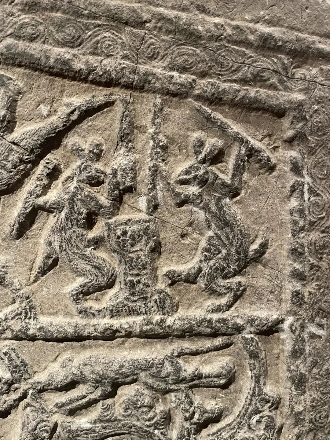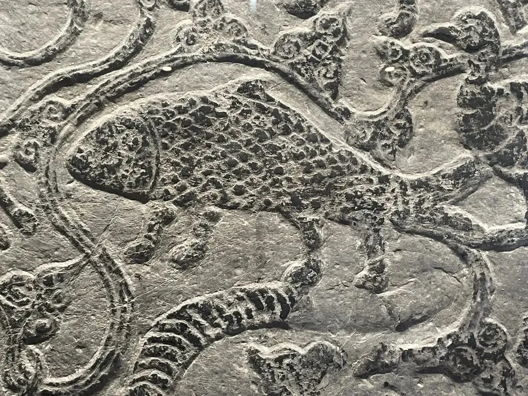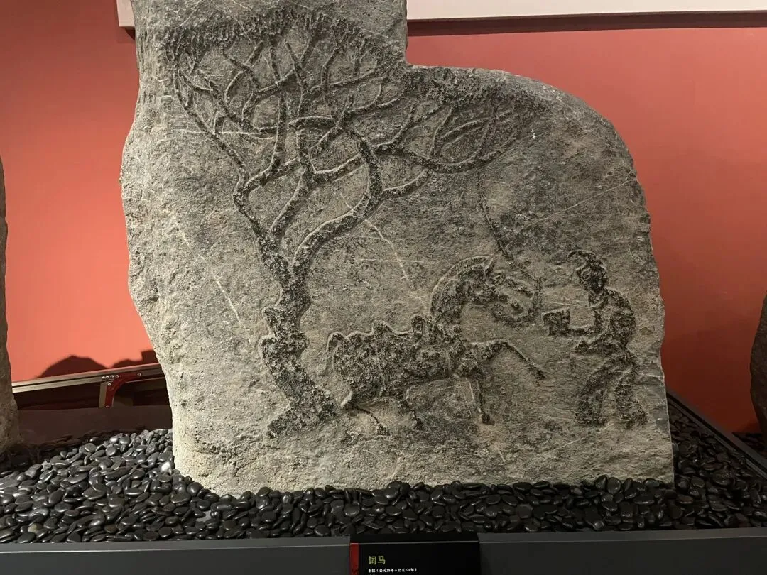 此行的目的,便是徐州汉画像石艺术馆。此馆分南北两馆,北馆为院落式布局,一部分在户外,一部分在屋内,而南馆则是完全在室内的。其中展品数量相当庞大,北馆的展览方式也相当草率,一些石板直接挂在户外墙上,任凭其风吹日晒。这个比徐州的更好一些,包括一些展品的投影影像制作啥的最后,我想吐槽一下徐州和滕州这两个馆的文创产品,我认为设计的都不是很好。金属挂件和冰箱贴一类,文物本身无色彩,而文创产品非要将图形填上饱和度极高的色彩,虽然色彩搭配还可以,但是几乎是和文物本身没什么关系了。明信片的排版也很丑,明明把拓本直接印上去就已经很漂亮了,却还要加一个边框和一个大logo。